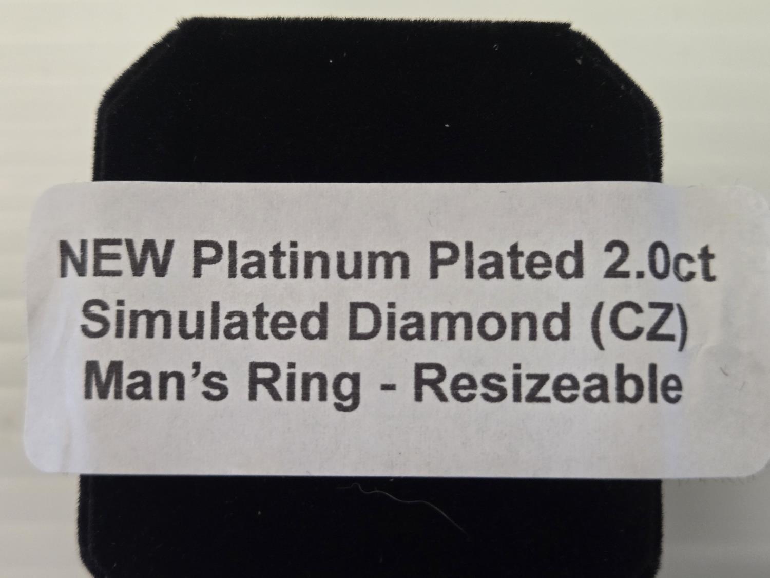 2034 Smartlife Platinum Plated 2.0 Ct Simulated Diamond Man's Ring (Unused)
