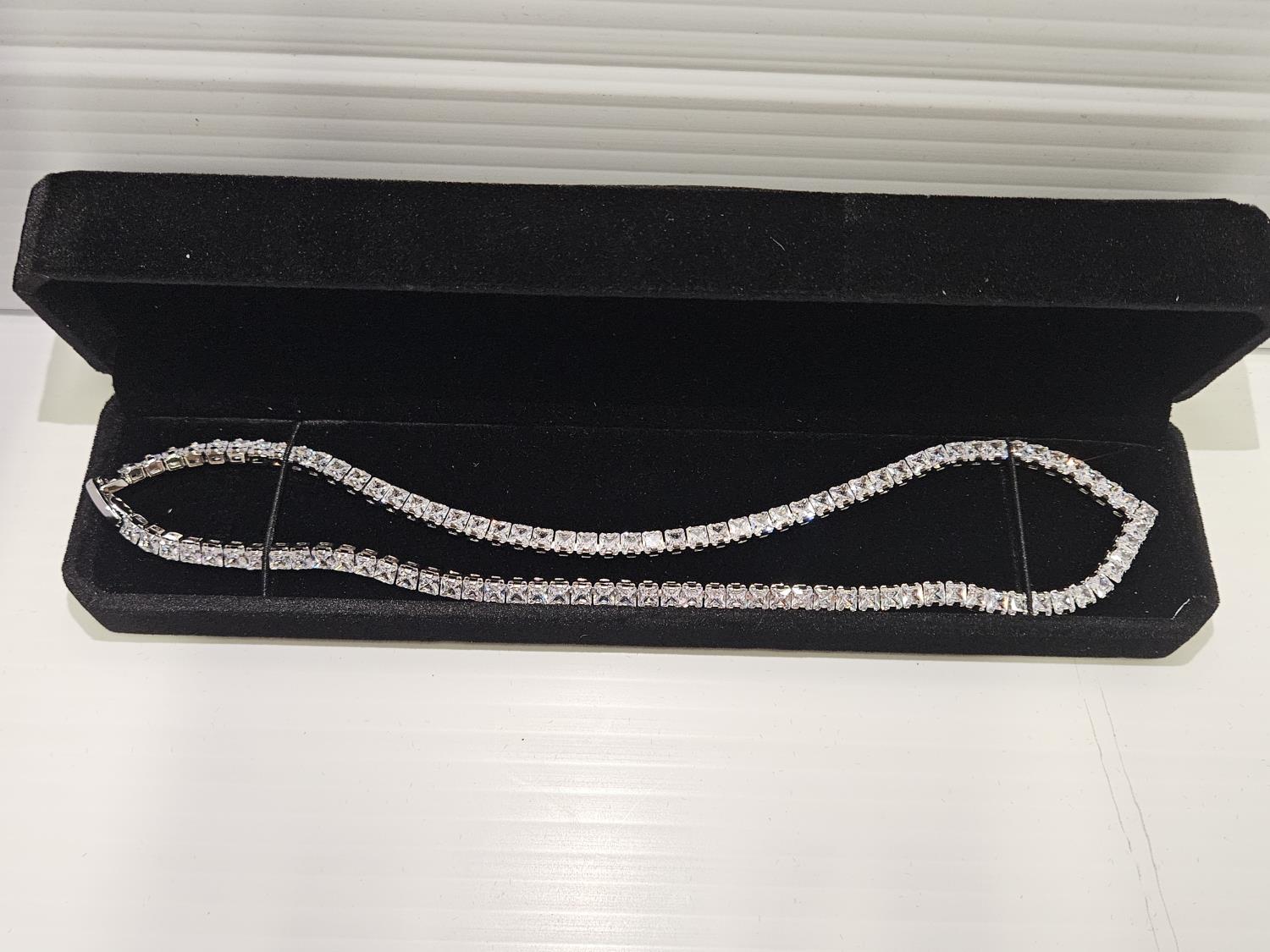 2024 Smartlife Platinum Plated 4.0 mm Princess Cut Simulated Diamond (CZ) Tennis Necklace (Unused)