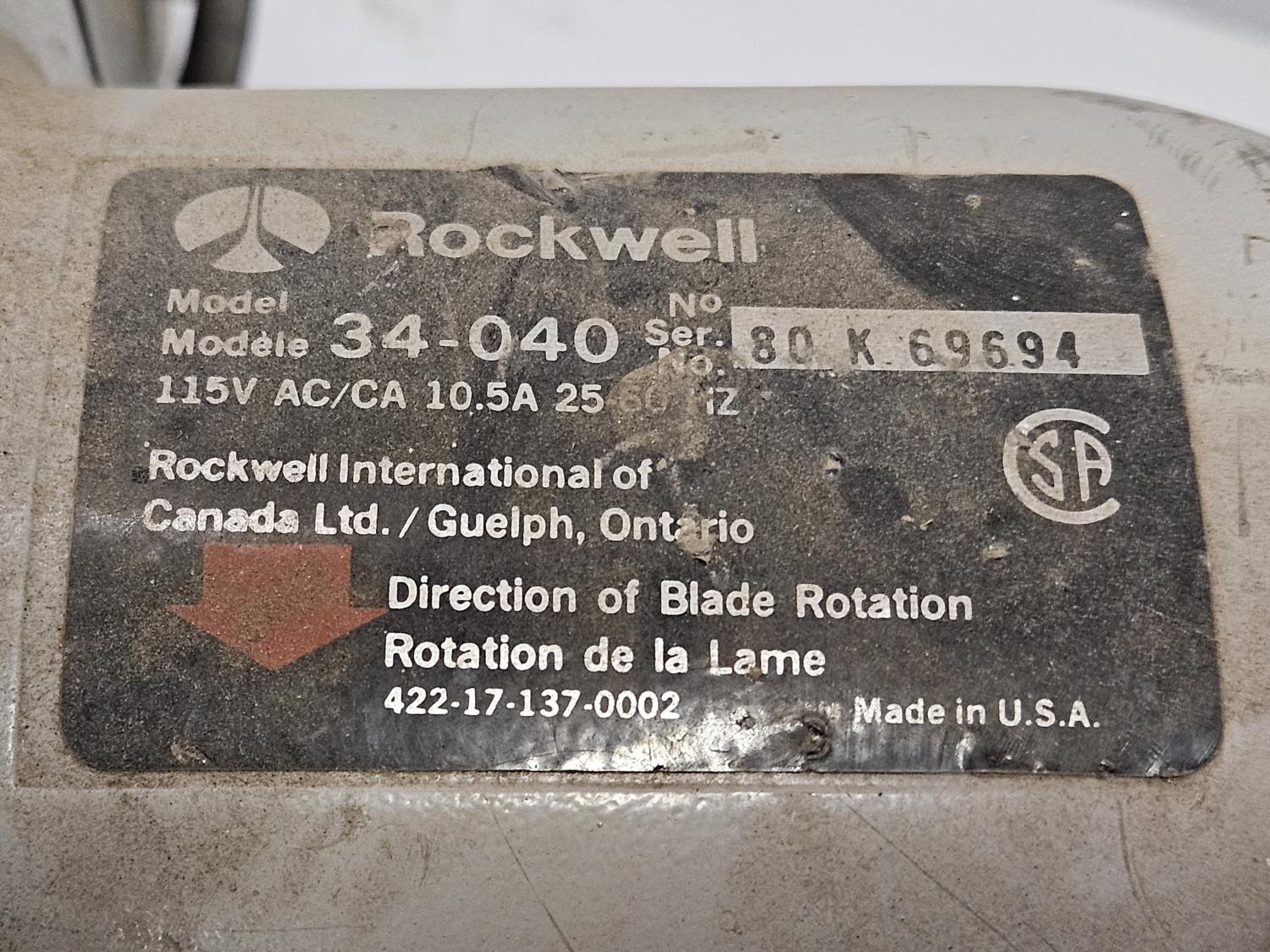 2076 Rockwell 34-040 Cut-Off Saw