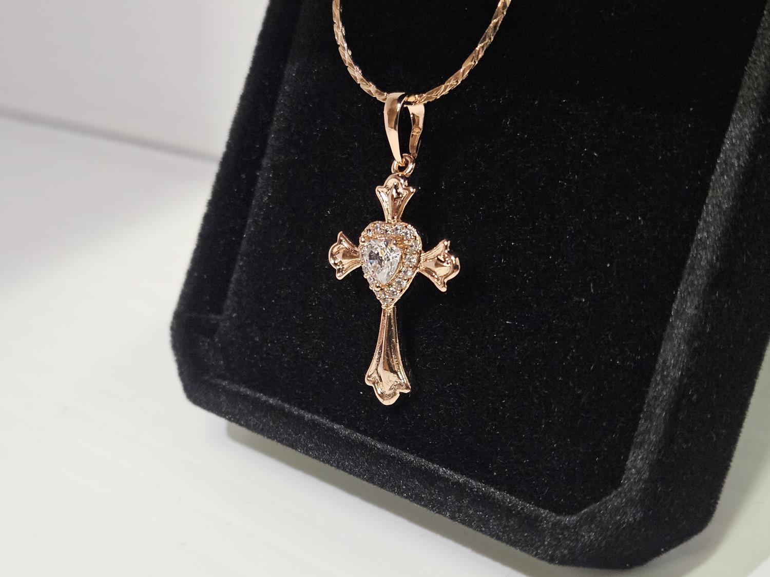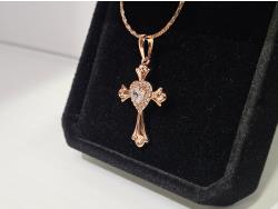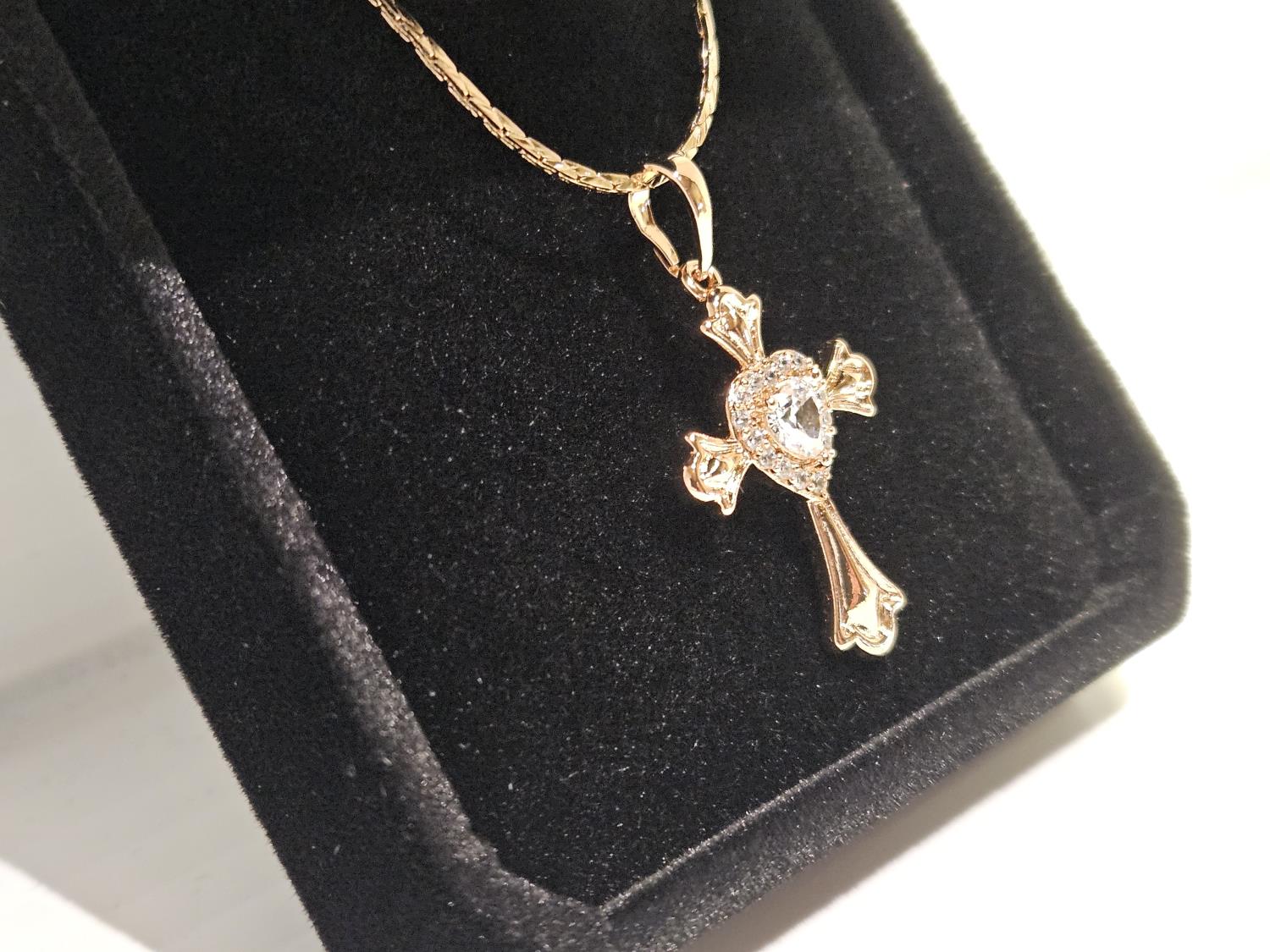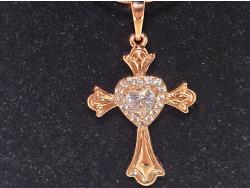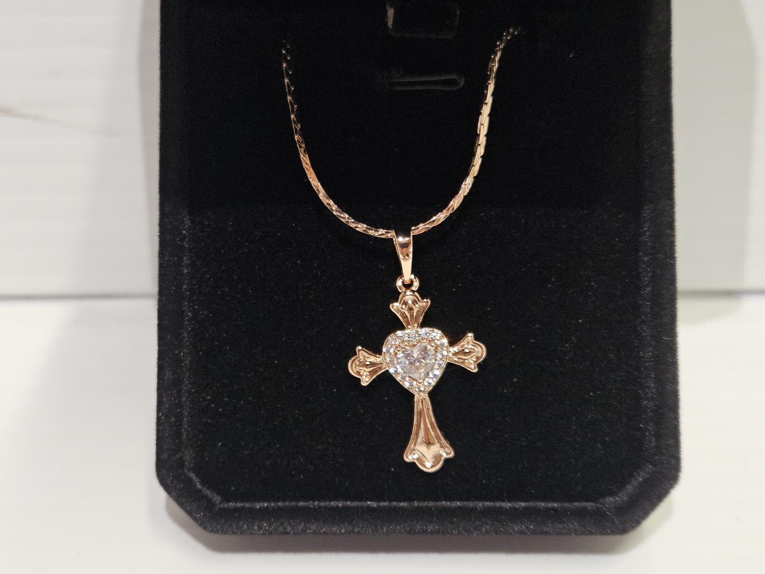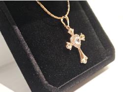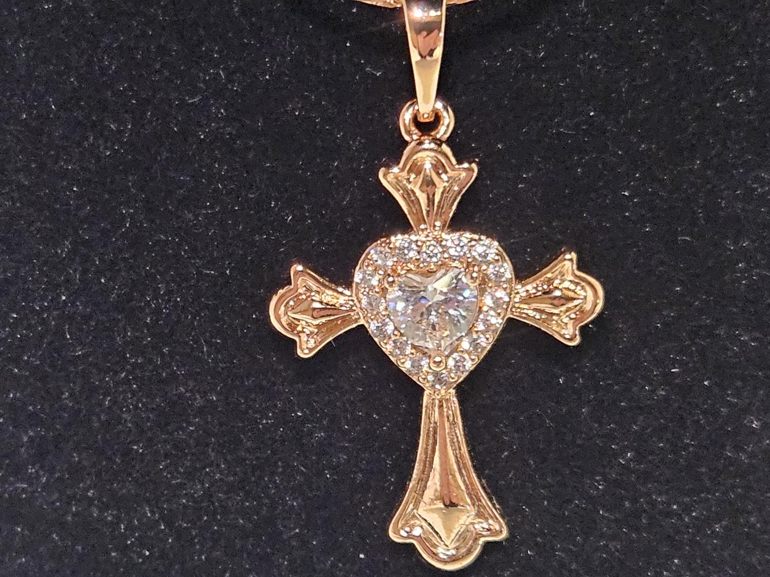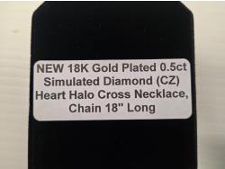 2027 Smartlife 18 K Gold Plated 0.5 Ct Simulated Diamond (CZ) Heart Halo Cross Necklace (Unused)