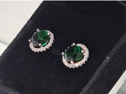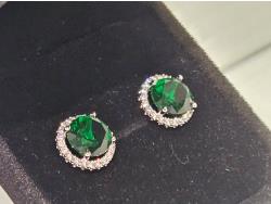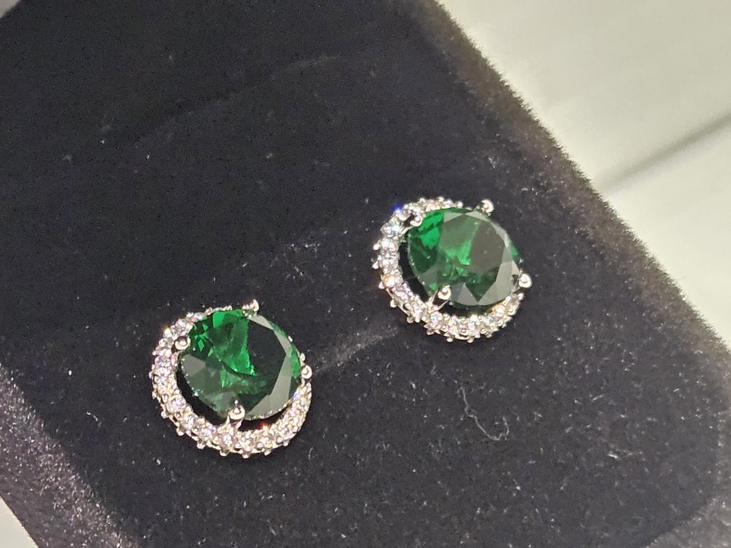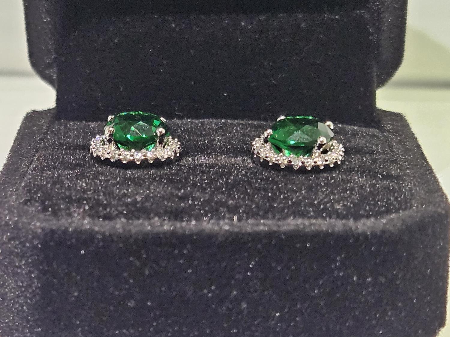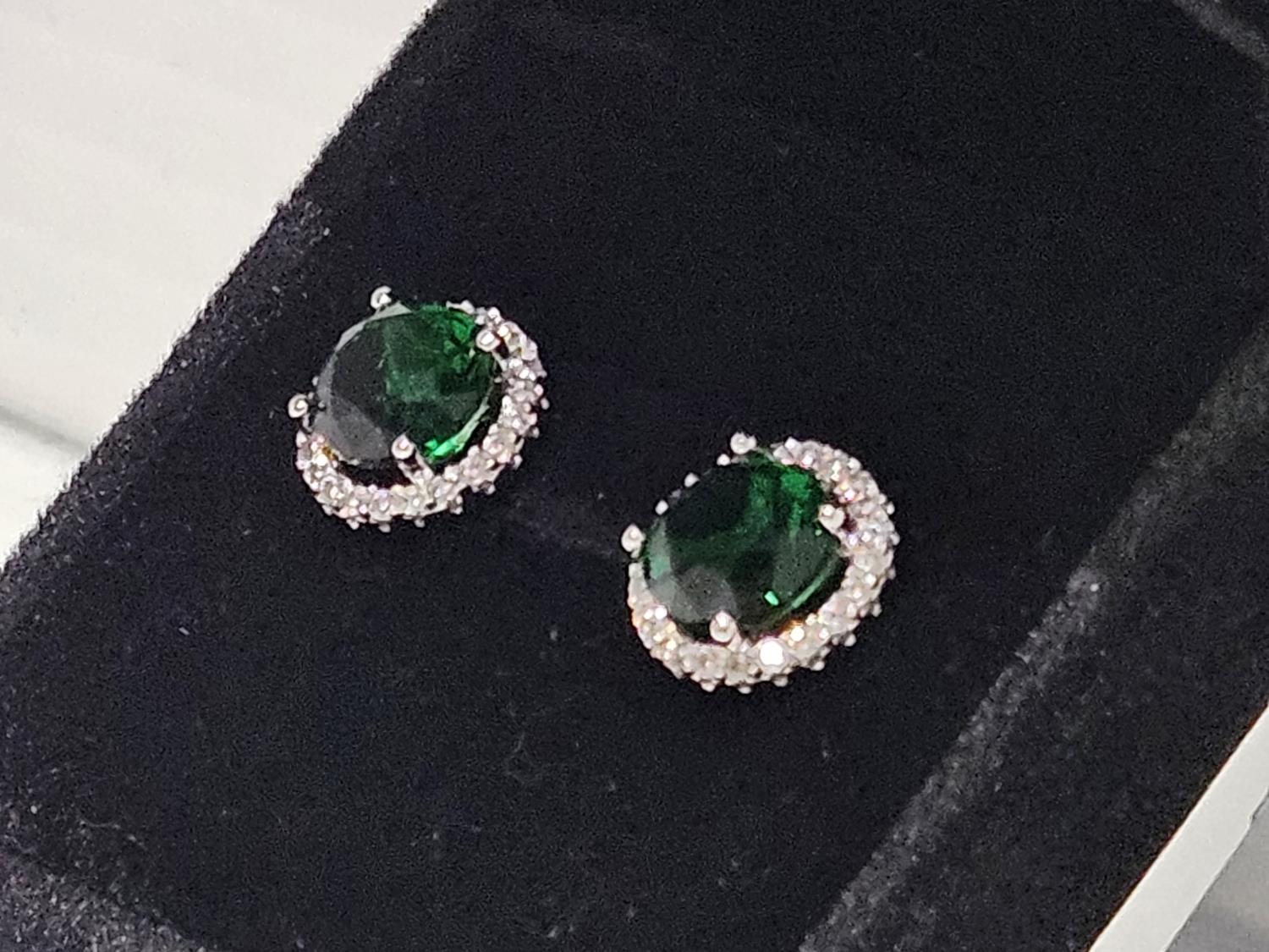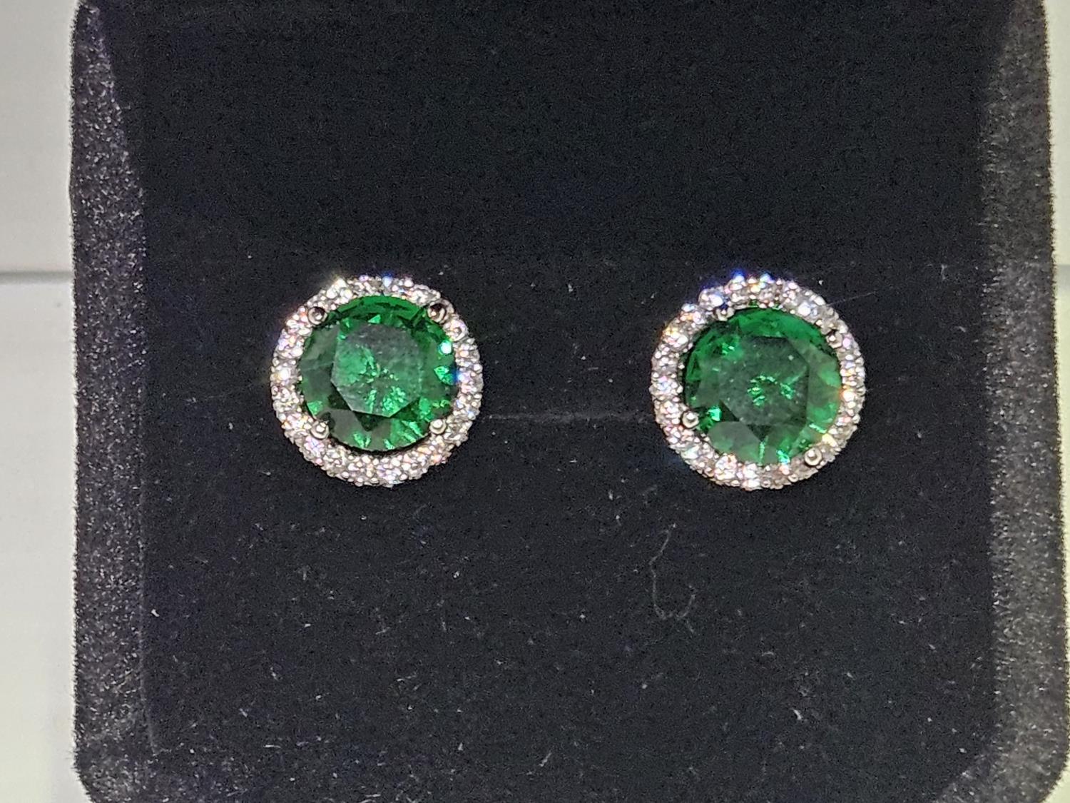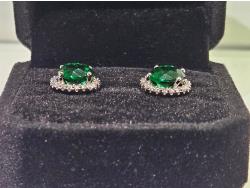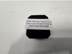 2020 Smartlife Platinum Plated 2.0 Ct Each Lab Created Emerald Halo Stud Earrings (Unused)