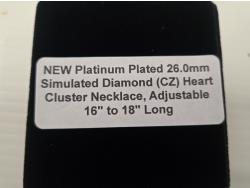 2025 Smartlife Platinum Plated 26.0 mm Simulated Diamond (CZ) Heart Cluster Necklace (Unused)