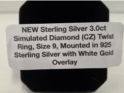 2032 Smartlife Sterling Silver 3.0 Ct Simulated Diamond (CZ) Twist Ring (Unused)