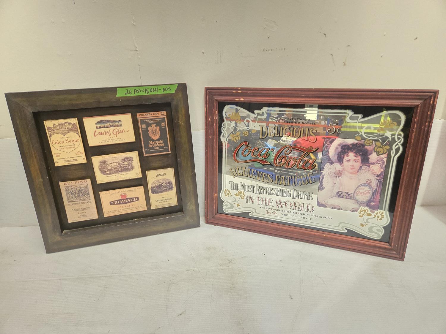 2109 Vintage Coca Cola Framed Sign & Wine Ladel Framed Sign