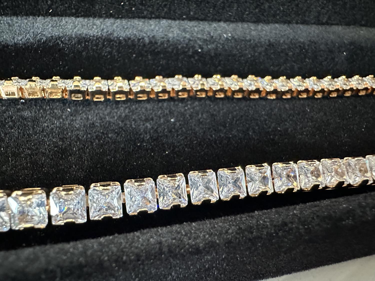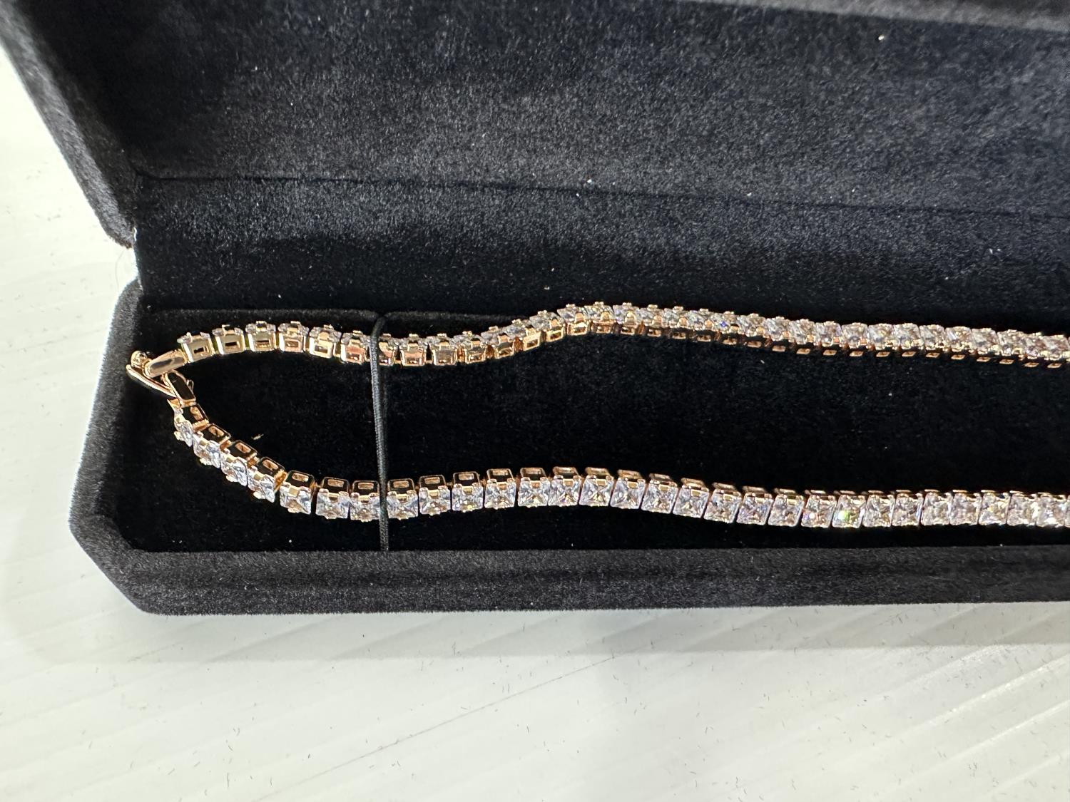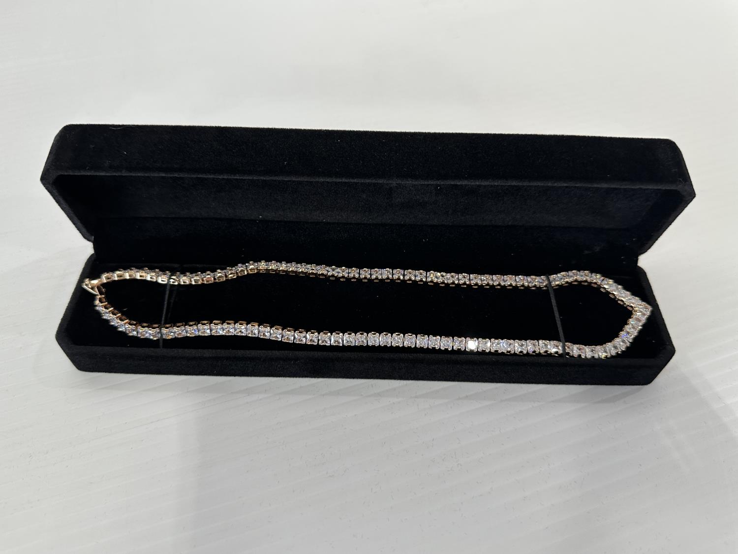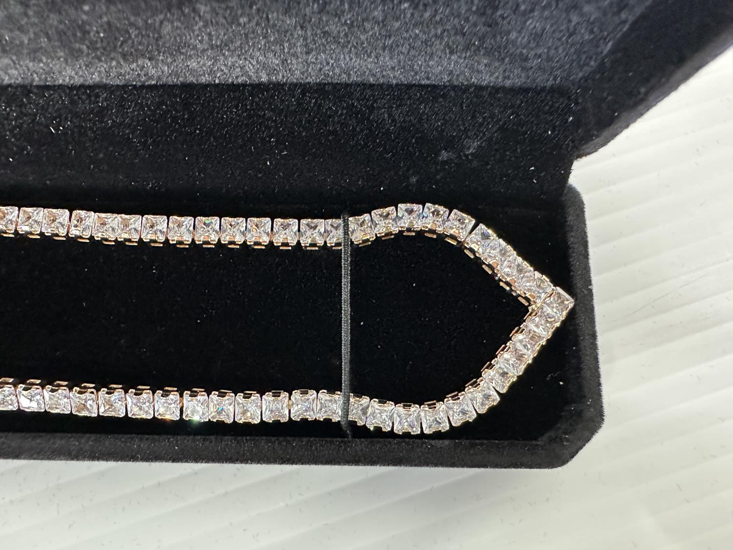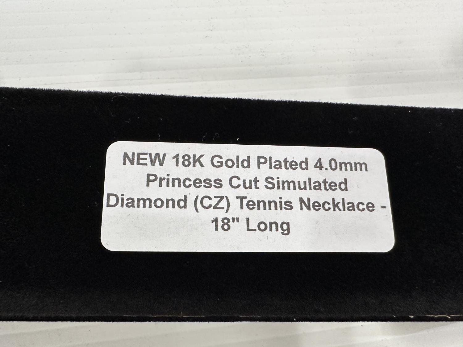 1247 Smartlife 18K Gold Plated 4.0 mm Princess Cut Simulated Diamond (CZ) Tennis Necklace (Unused)