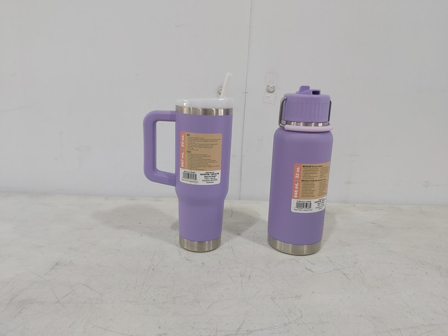1147 Bass Pro Shops 30 oz Insulated Mug and 32 oz Water Bottle with Straw Lid