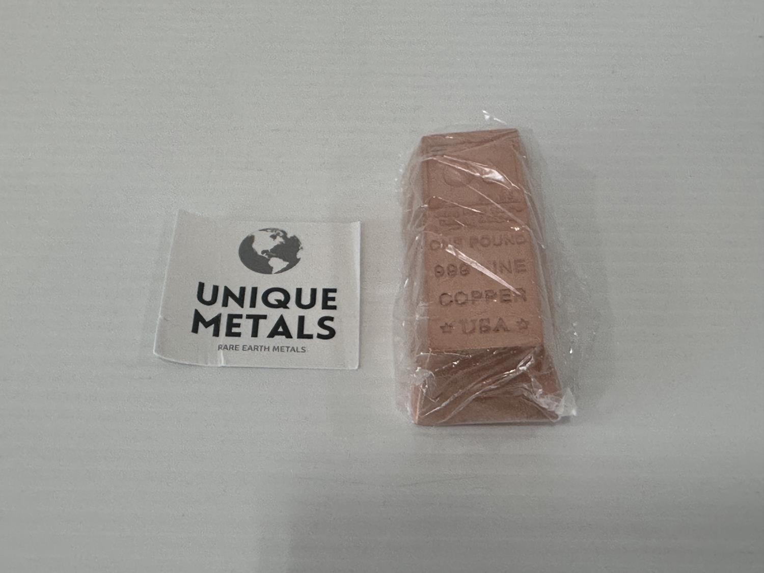 1304 One Pound .999 Fine Copper Bar (Unused)