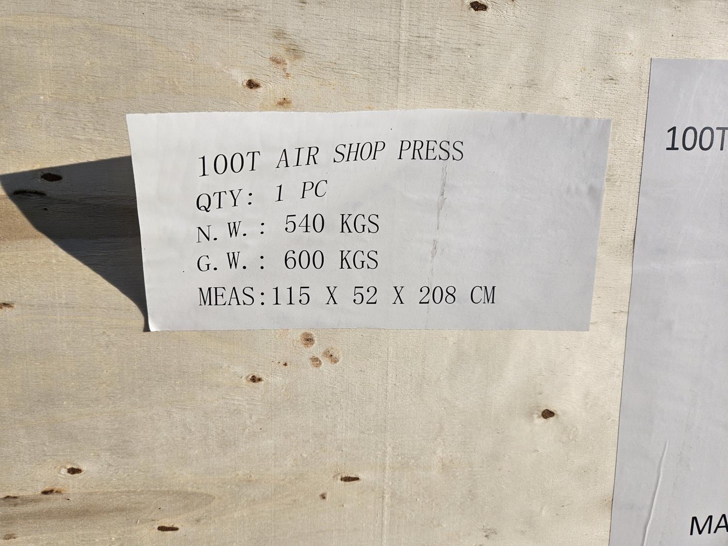 3604 100 Ton Air Shop Press (Unused)