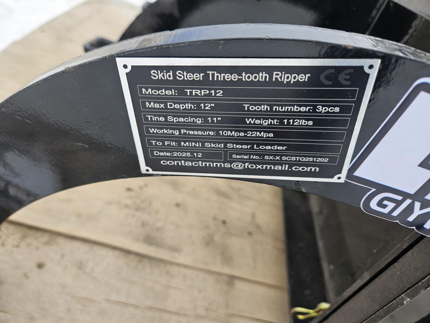 3282 GIYI TRP12 12 Inch Ripper Mini Skid Steer Attachment (Unused)