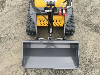 Open station, RAT0 420 15HP 8.5KW gas engine, Bucket capacity: 2.83 cubic feet, Rated load capacity: 200kg Gradeability: 30° Working speed: 0-6km/h Size: 2153×935×1218mm Maximum lift: 450KG., 35 inch smooth bucket, manual coupler, 1 auxiliary hydraulics, 7 inch rubber tracks