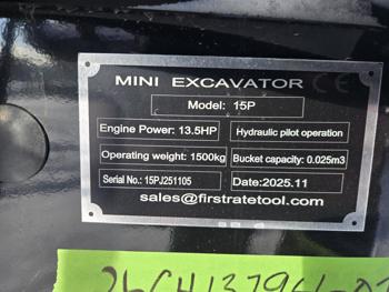 3642 2026 Miva VA15P 1 Ton Mini Excavator (Unused)