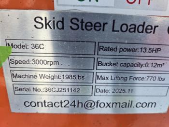 3655 2026 MMS MS36C Mini Stand On Tracked Skid Steer (Unused)