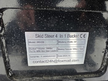 3711 2026 GIYI XKH39F 39 Inch Hydraulic Mini Skid Steer 4 in 1 Bucket (Unused)