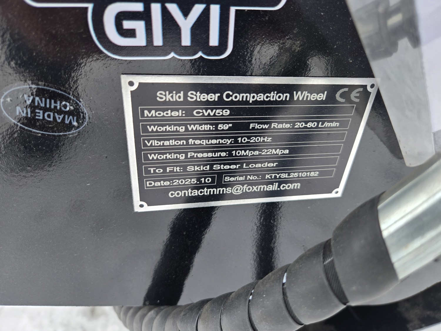 3774 2026 GIYI CW59 59 Inch Hydraulic Skid Steer Pad Foot Compaction Wheel (Unused)