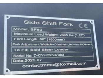 3301 GIYI GY-SF60 60 Inch Side Shift Pallet Forks Skid Steer Attachment (Unused)