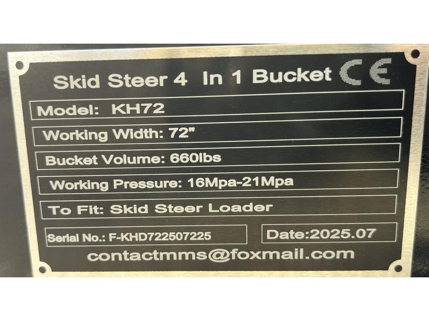 3343 GIYI KH72F 72 Inch Hydraulic 4 Inch 1 Bucket Skid Steer Attachment (Unused)