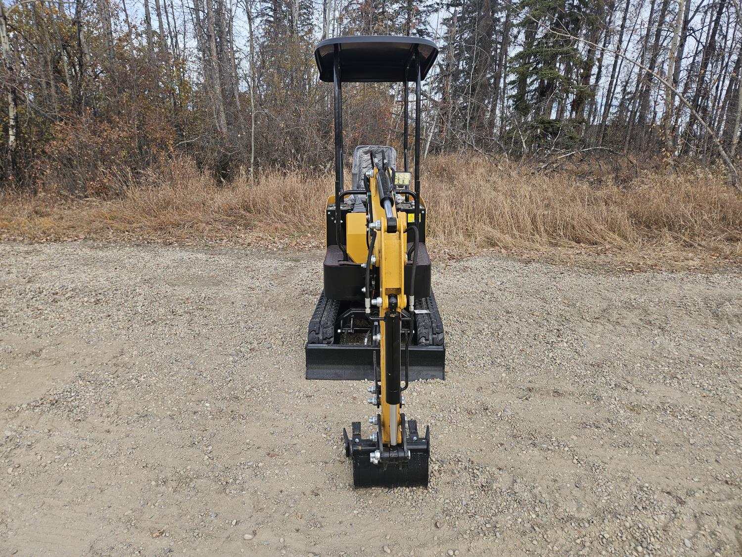 Open station, 420 cc gas engine, 16 inch dig bucket, manual thumb, 2 Ft 8 inch stick, backfill blade, 7 inch rubber tracks