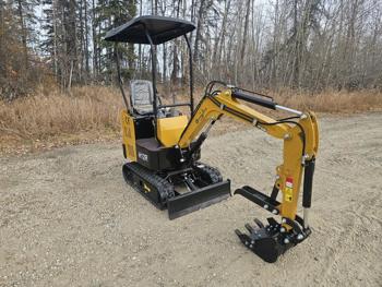 Open station, 420 cc gas engine, 16 inch dig bucket, manual thumb, 2 Ft 8 inch stick, backfill blade, 7 inch rubber tracks
