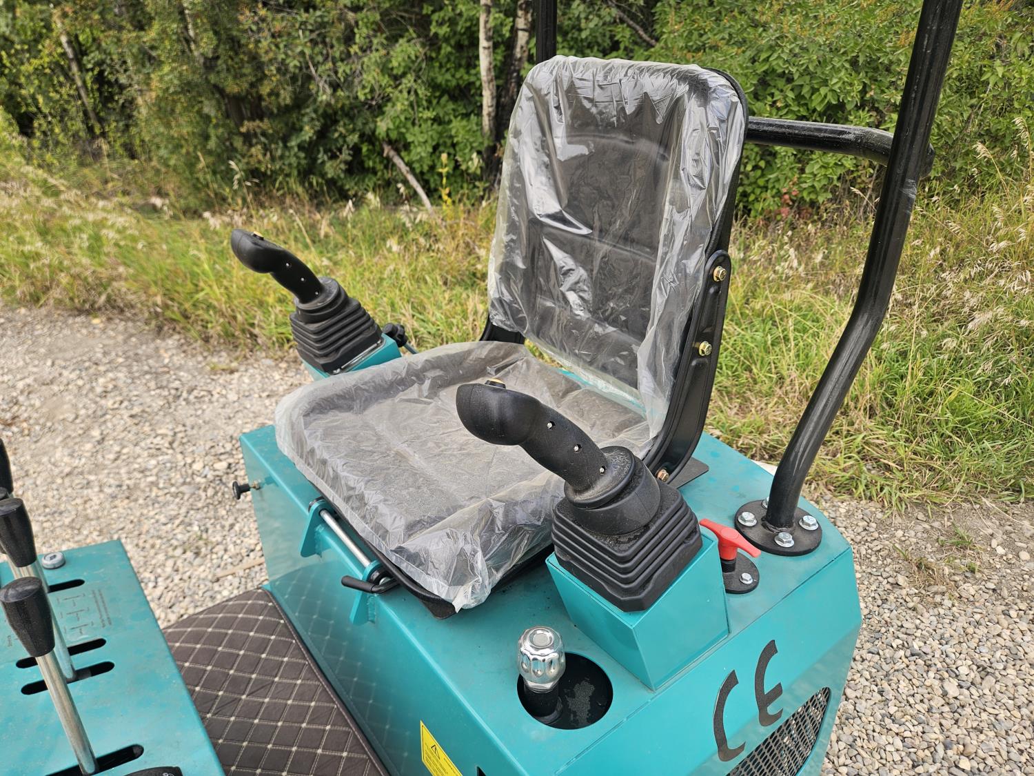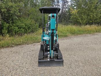 Open station, 420cc gas engine, 16 inch dig bucket, manual thumb, 2 Ft 8 inch stick, backfill blade, 7 inch rubber tracks