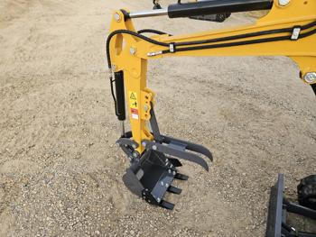 Open station, 420 gas engine, 16 inch dig bucket, manual thumb, 2 Ft 8 inch stick, backfill blade, 7 inch rubber tracks