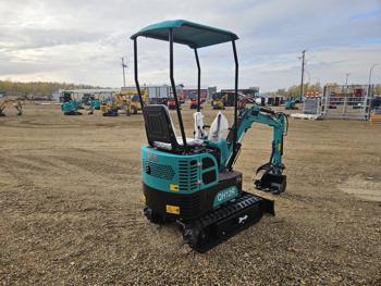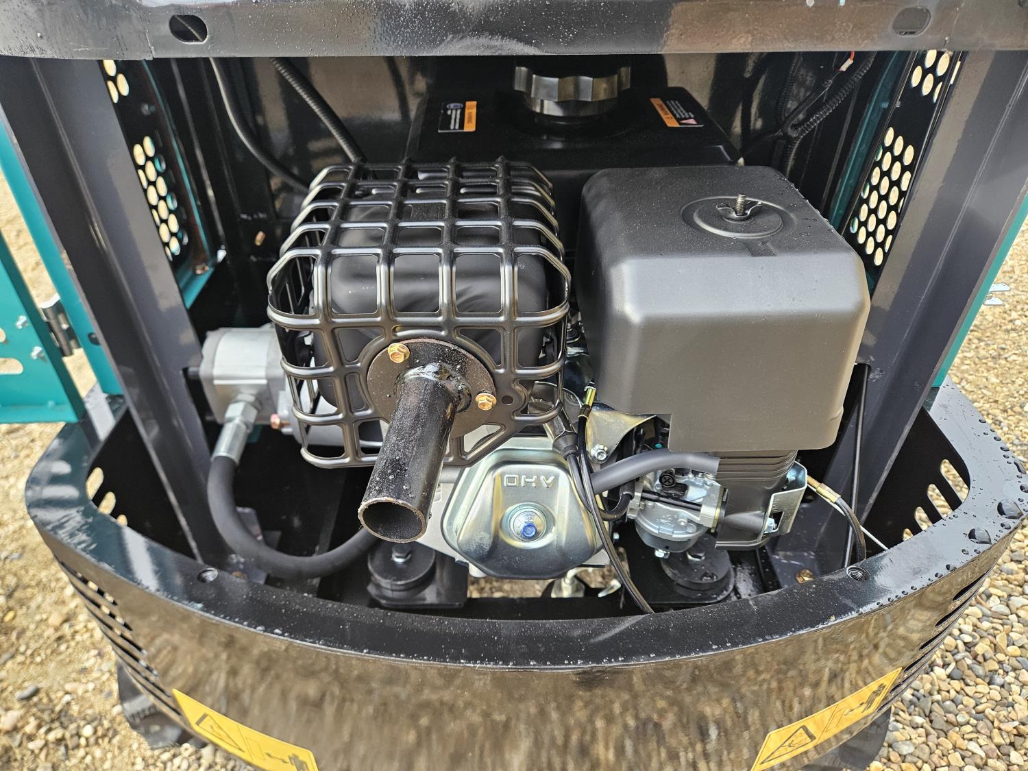 Open station, 420cc gas engine, 16 inch dig bucket, manual thumb, 2 Ft 8 inch stick, backfill blade, 7 inch rubber tracks