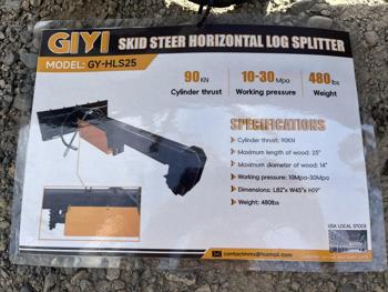 3449 GIYI HLS25 Hydraulic Log Splitter Skid Steer Attachment (Unused)