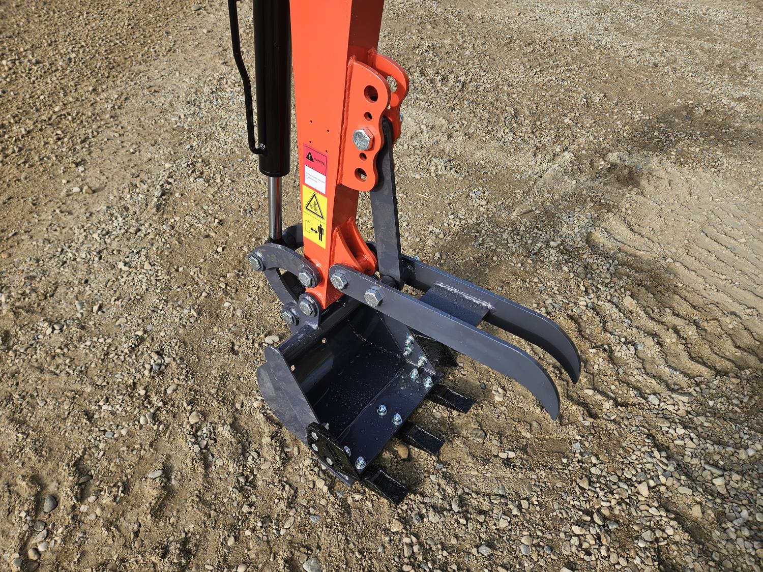 Open station, 420cc gas engine, 16 inch bucket, manual thumb, 2 Ft 8 inch stick, backfill blade, 7 inch rubber tracks