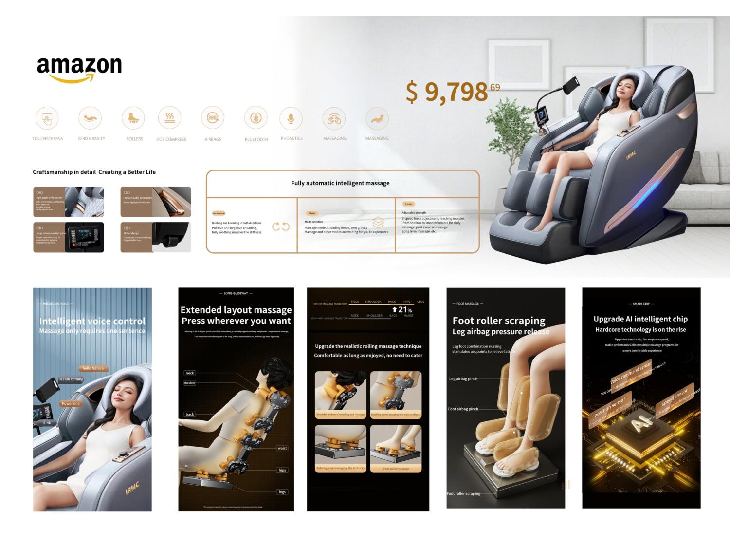 Cell phone holder, usb charging, full body airbag, hip wheel roller massage, large screen controller, foot roller massager, zero gravity mode