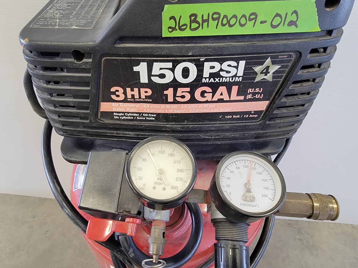 3 HP, 120V, 150 max PSI