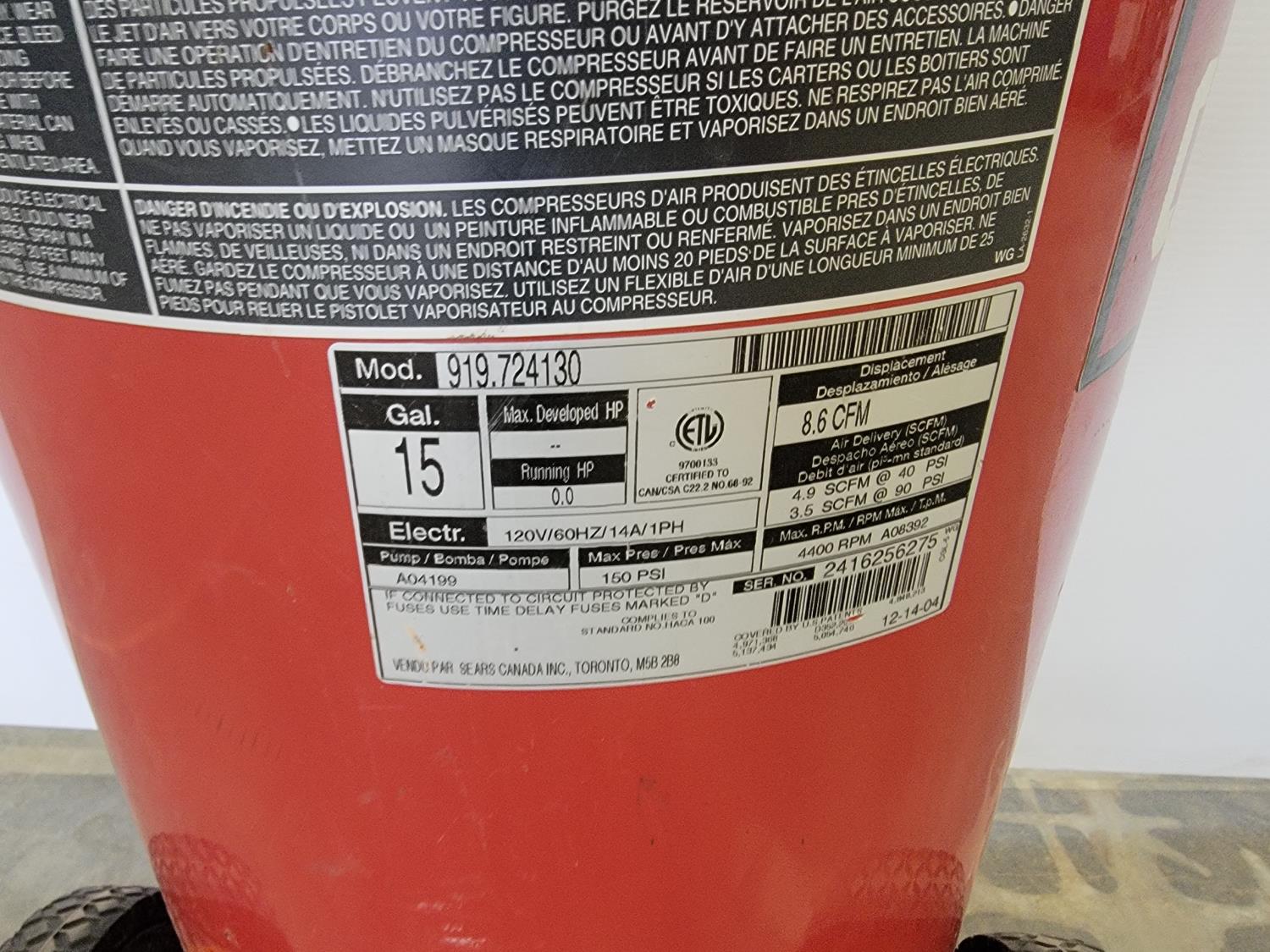 5307 Craftsman 15 Gallon Upright Air Compressor