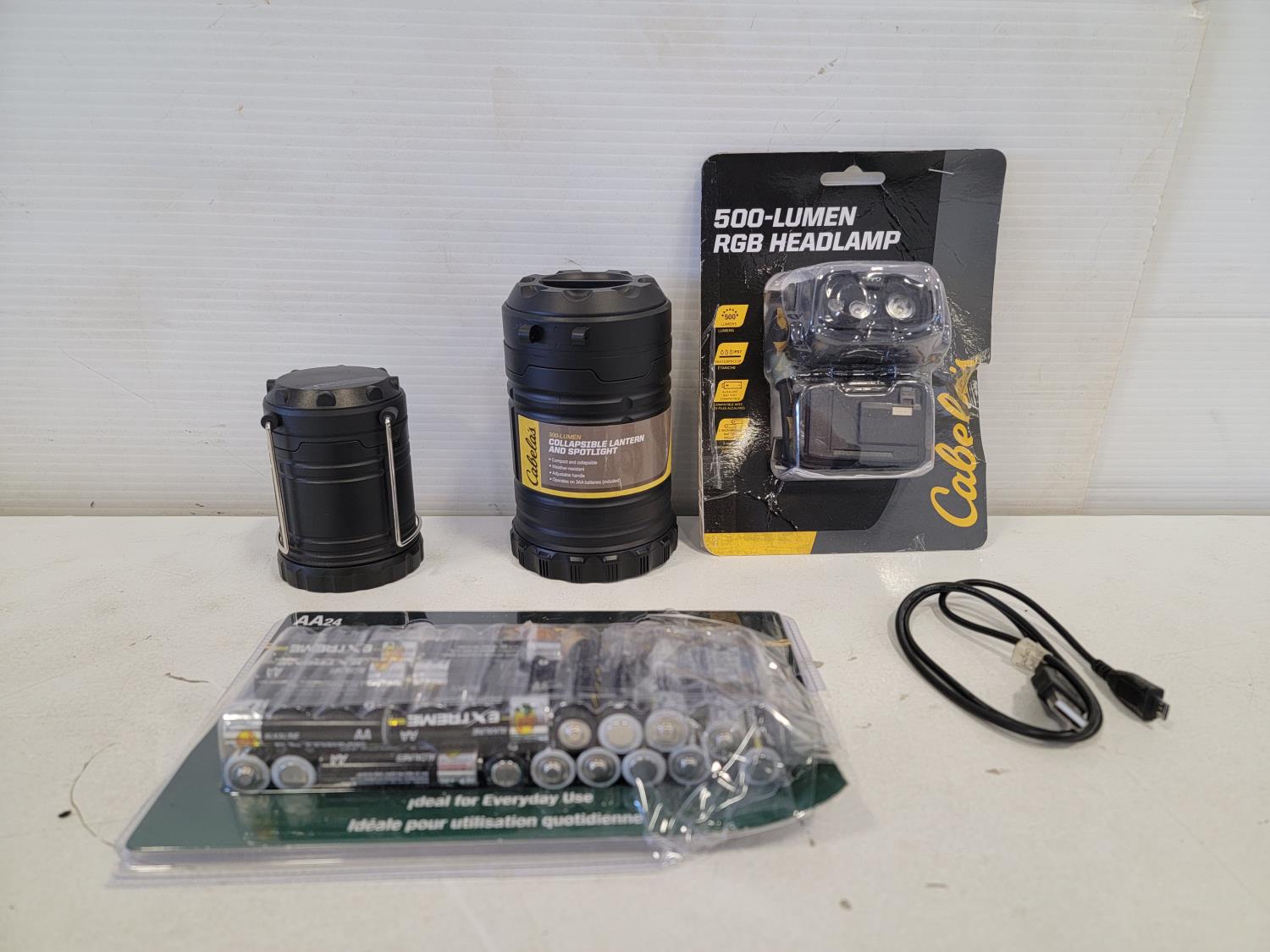 5106 (2) Collapsible Lanterns, 500 Lumen RGB Headlamp and 22 Piece AA Batteries