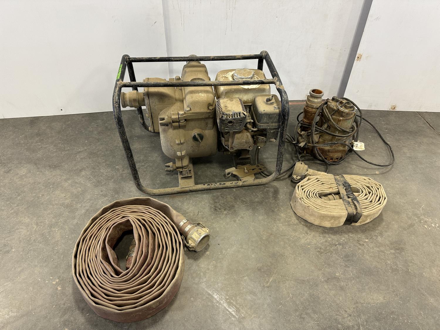 5296 Honda WT20X 2 Inch Trash Pump with (2) Lay Flat Hoses and 2 Inch Submersible Pump (Inoperable)