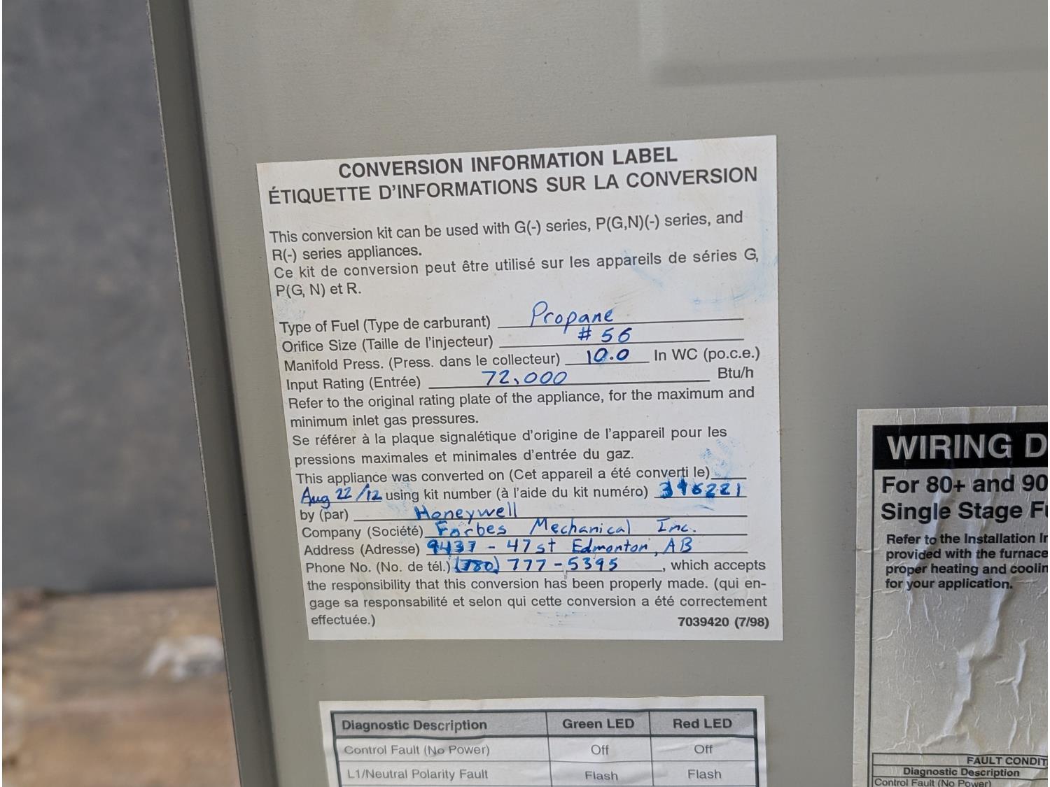 5308 Frigidaire 72,000 BTU Propane Furnace