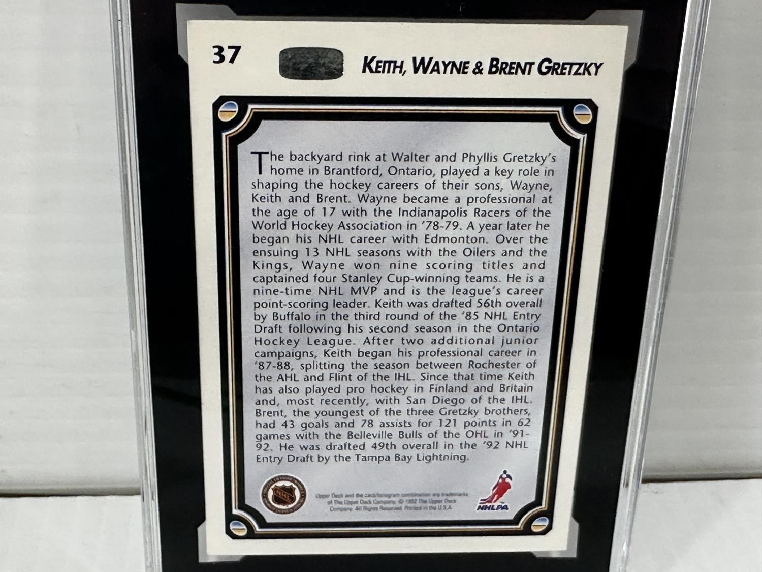 5050 1992-93 Upper Deck #37 Keith, Wayne & Brent Gretzky Bloodlines Hockey Card
