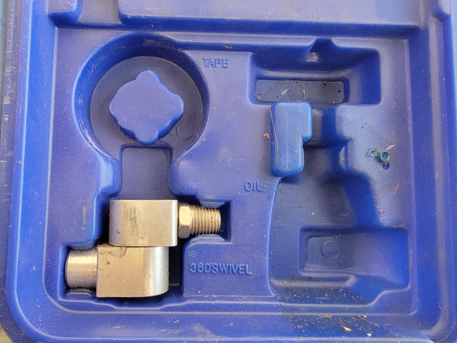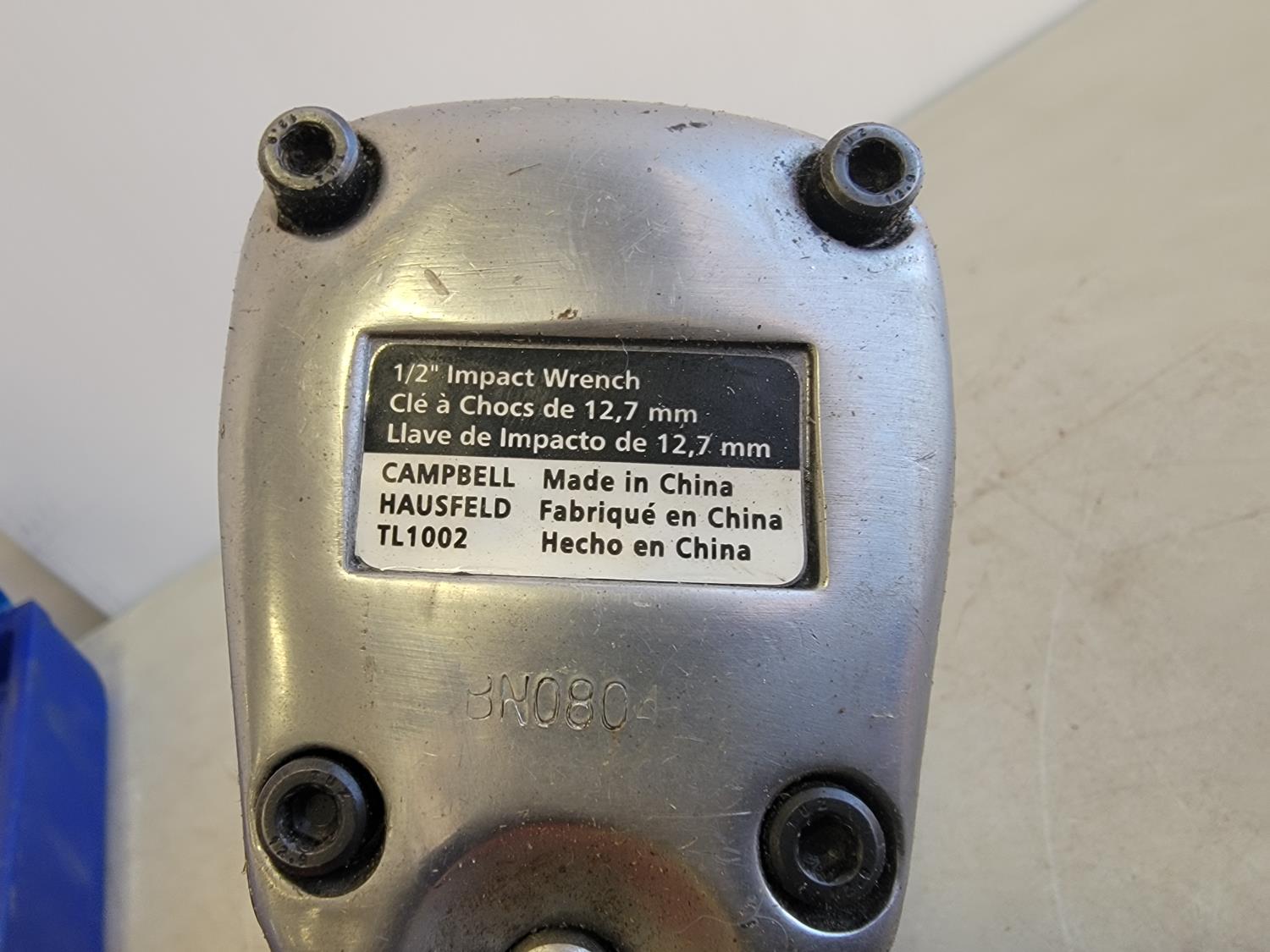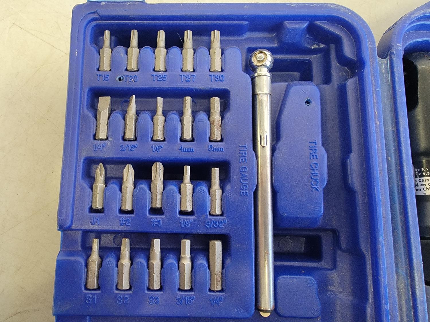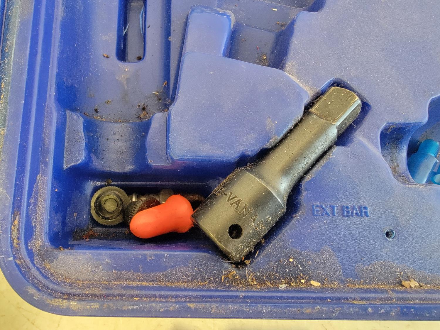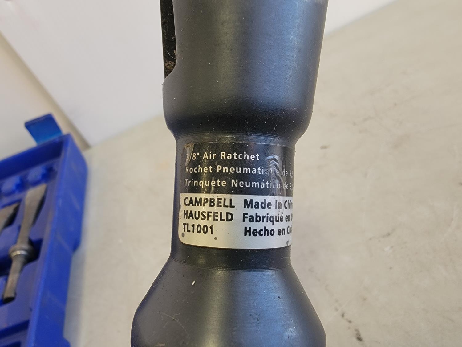 3/8 inch ratchet wrench, air hammer, 1/2 inch impact wrench, tire gauge, chisels