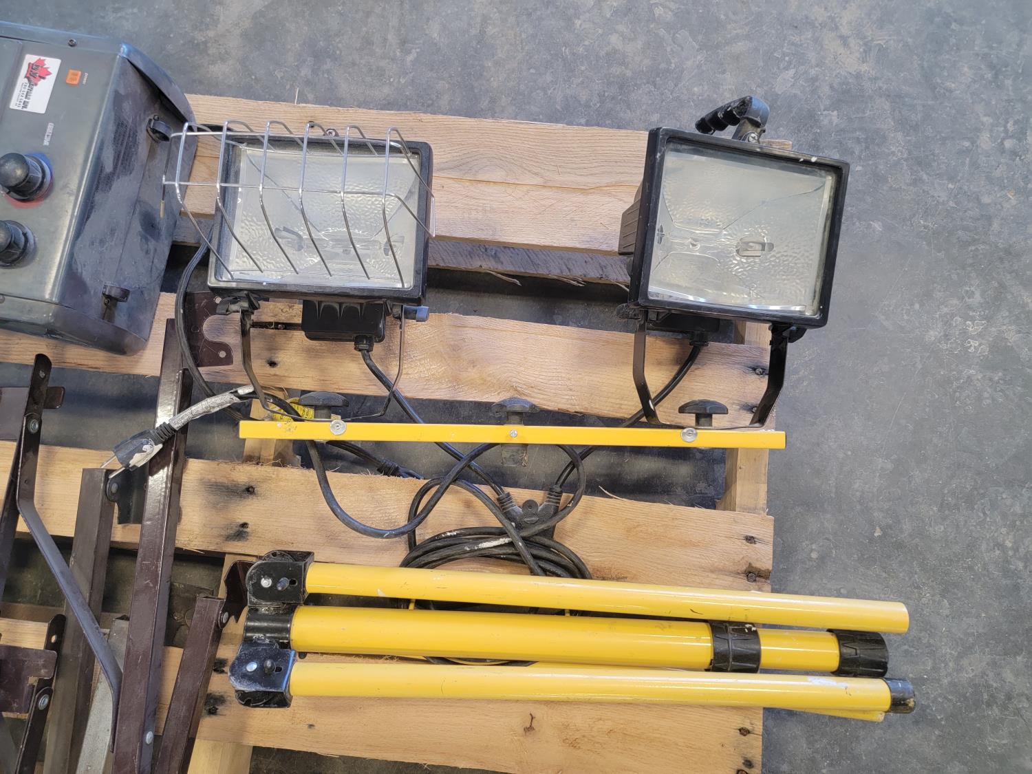 5301 Flood Light, Dual Work Light Stand and (4) Metal Folding Table Legs