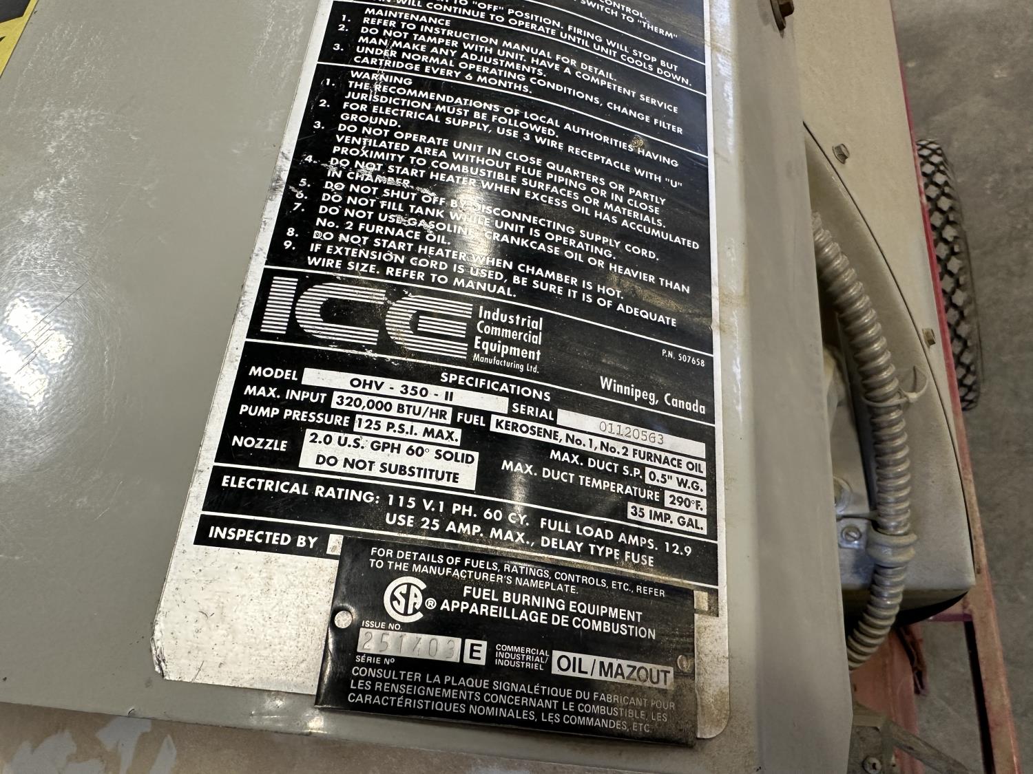 320,000 BTU/ hrs, 125 PSI max, 115V, single phase