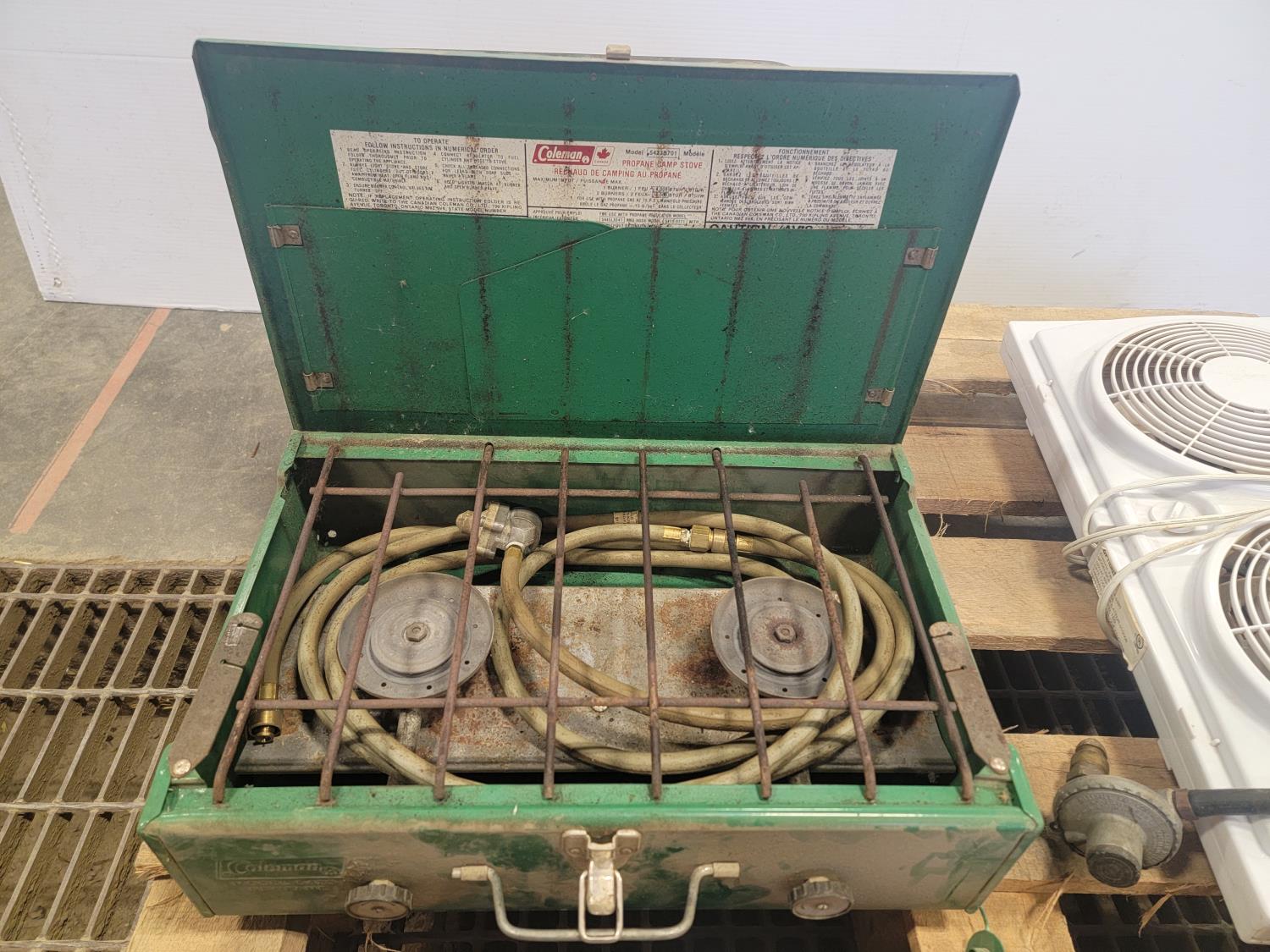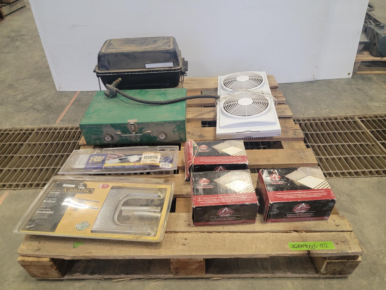 5298 Qty of BBQ Items, Dual Window Fan, Propane Camp Stove and Table-Top Propane BBQ