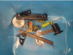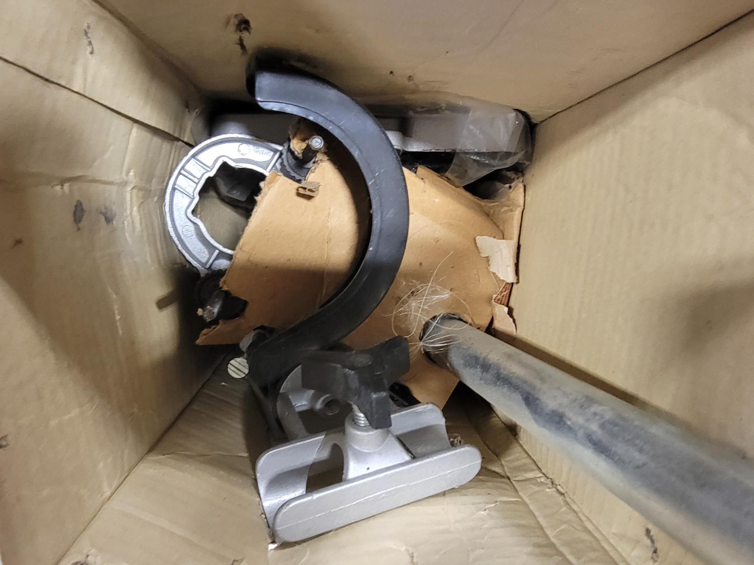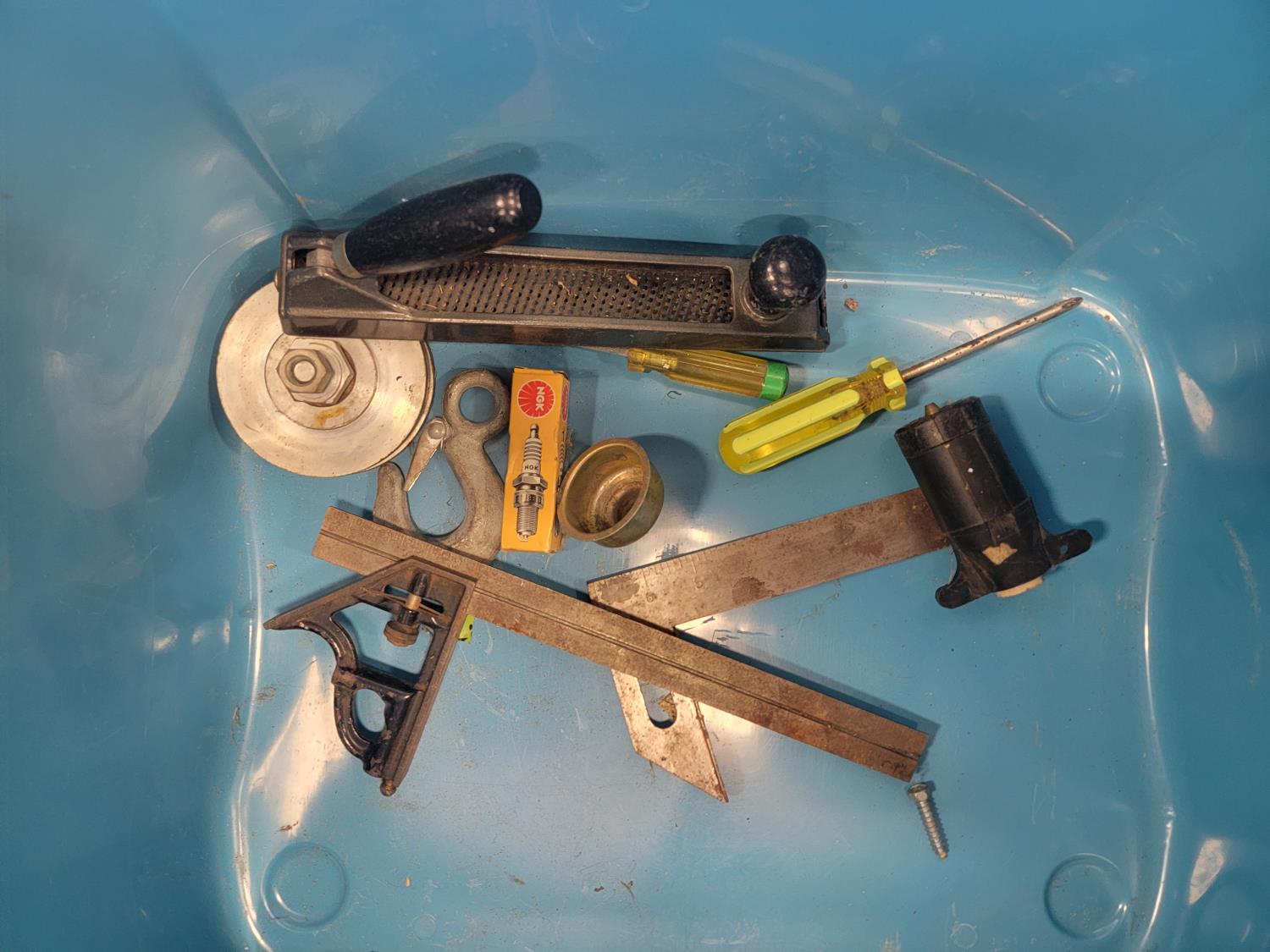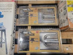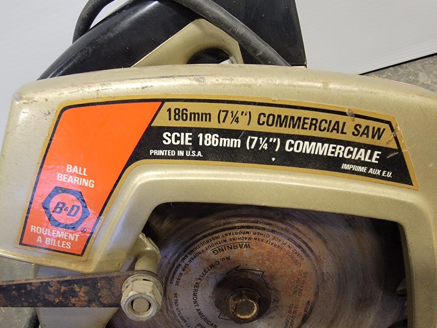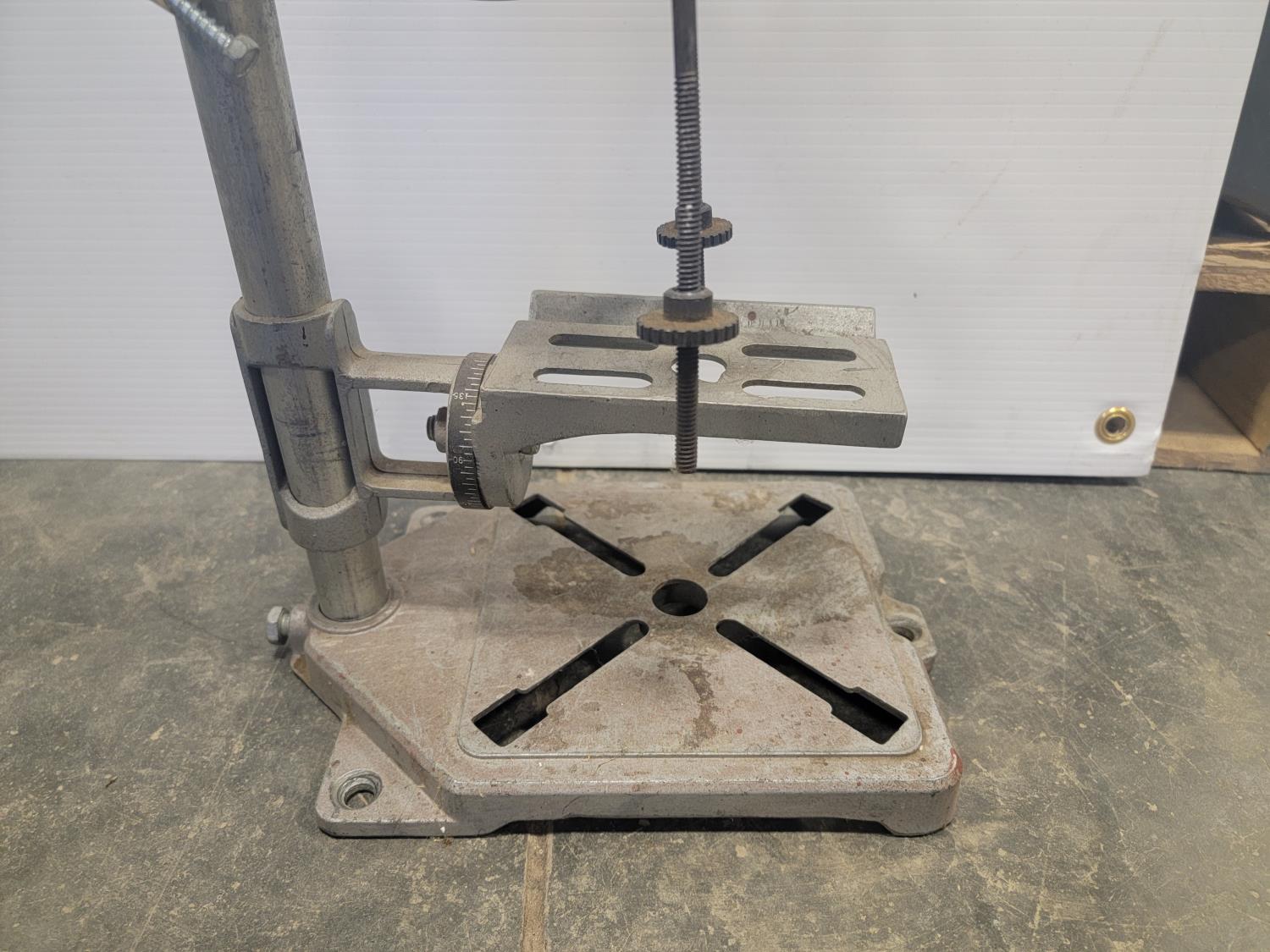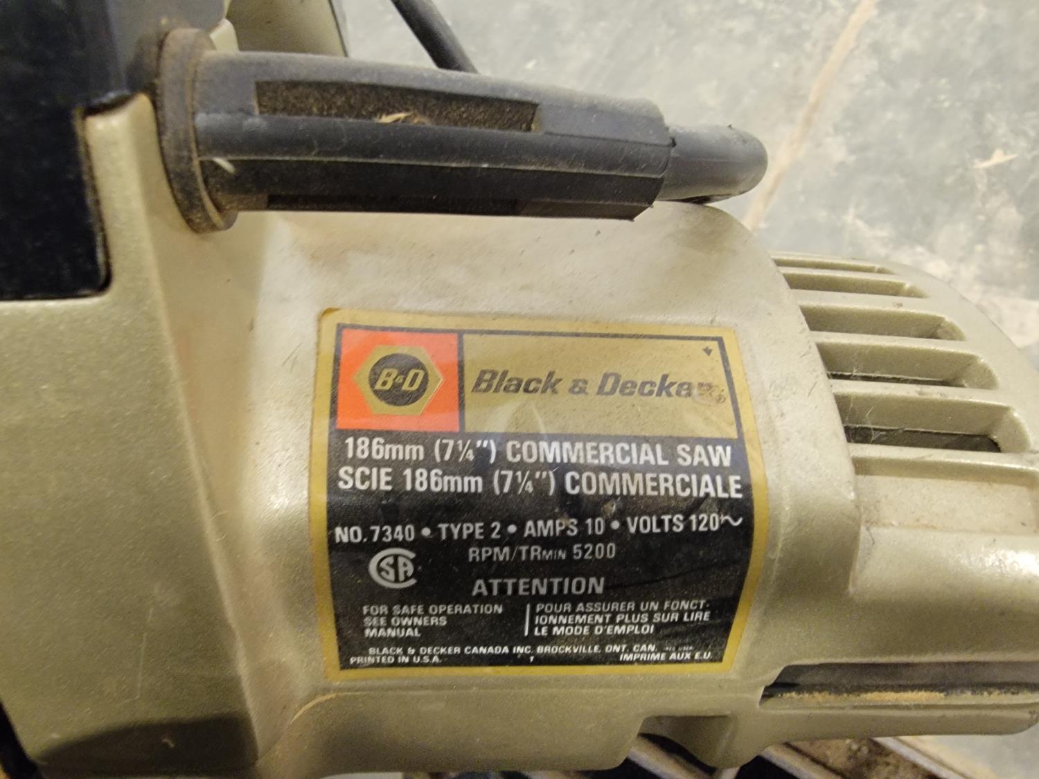 (2) stainless steel BBQ burners, Shop Fox tool table, (2) drill press stands, Black & Decker 7-1/4 inch circular saw