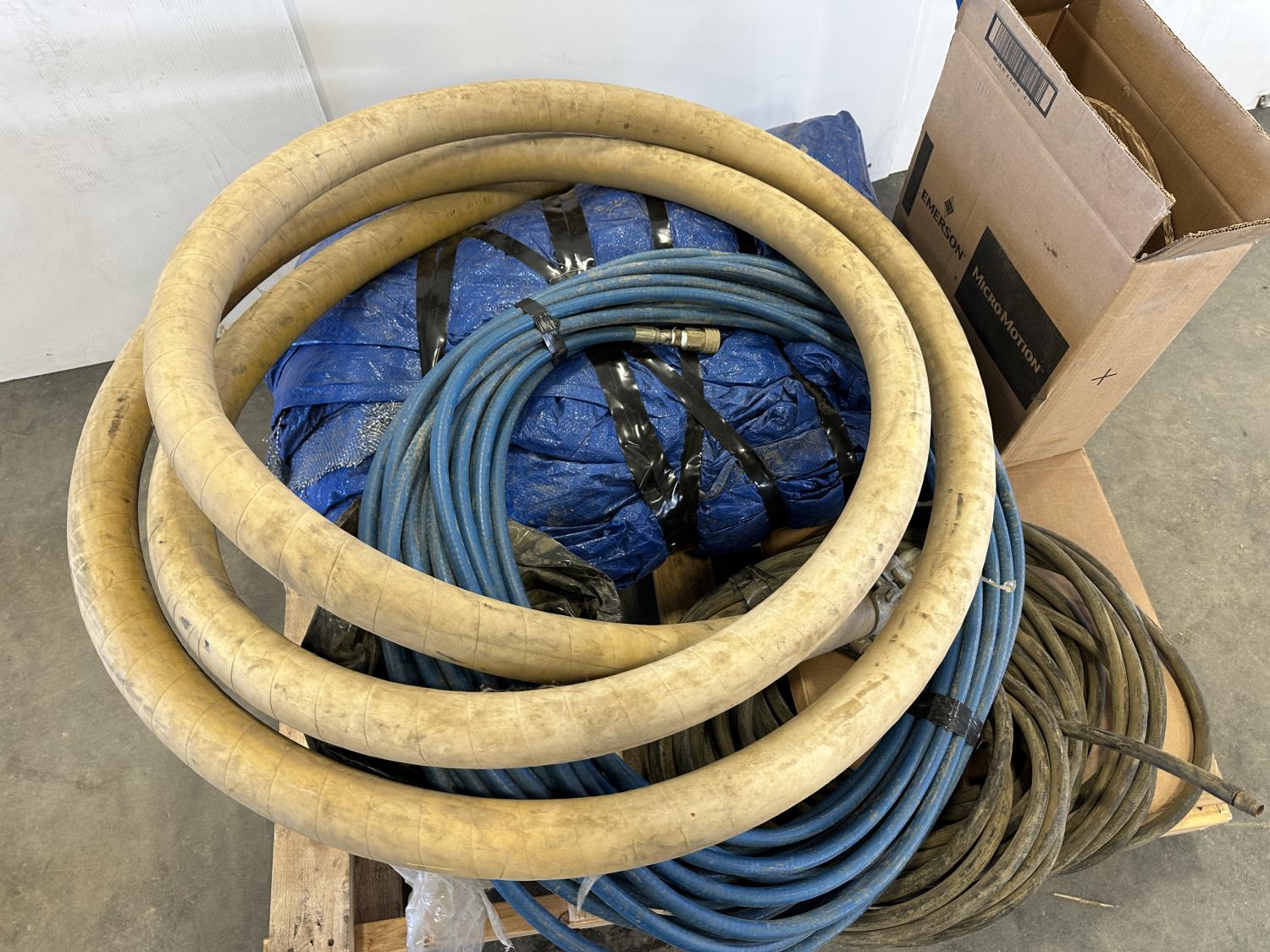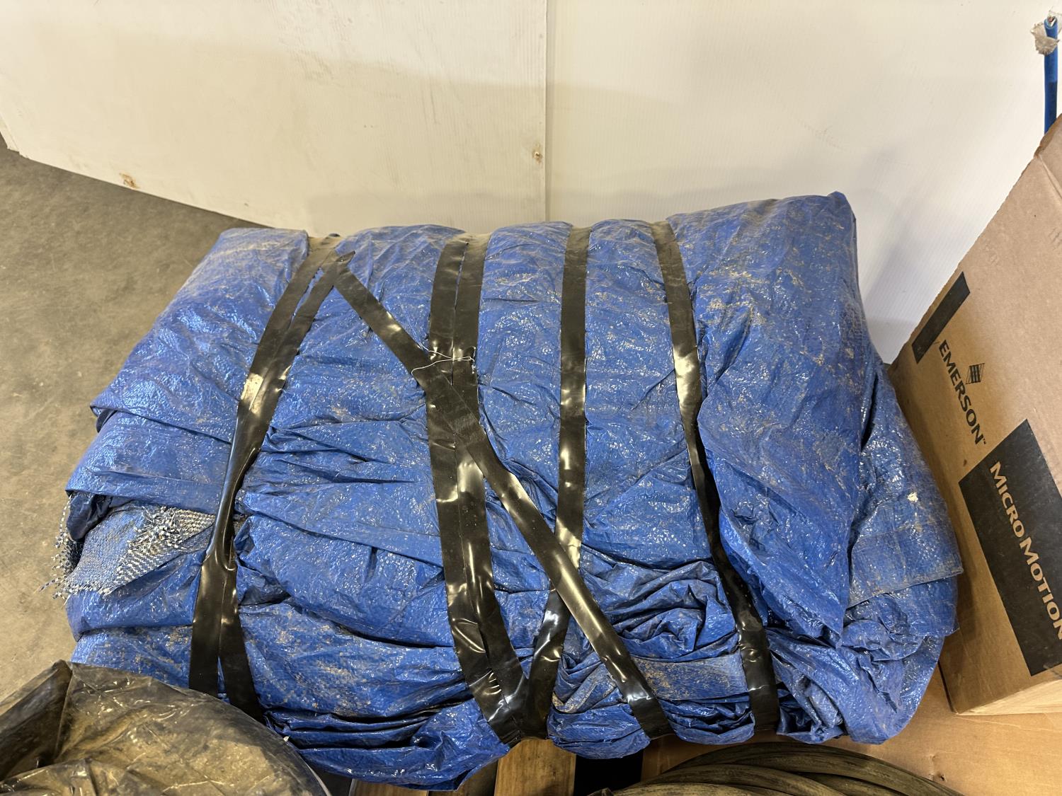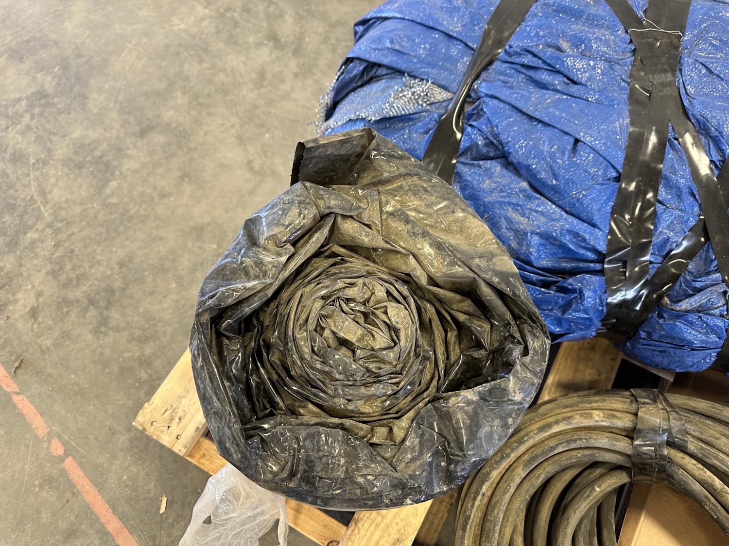 tarp, pipe insulation, 2 inch air hose, air hose, gas hose, partial roll of electrical cable