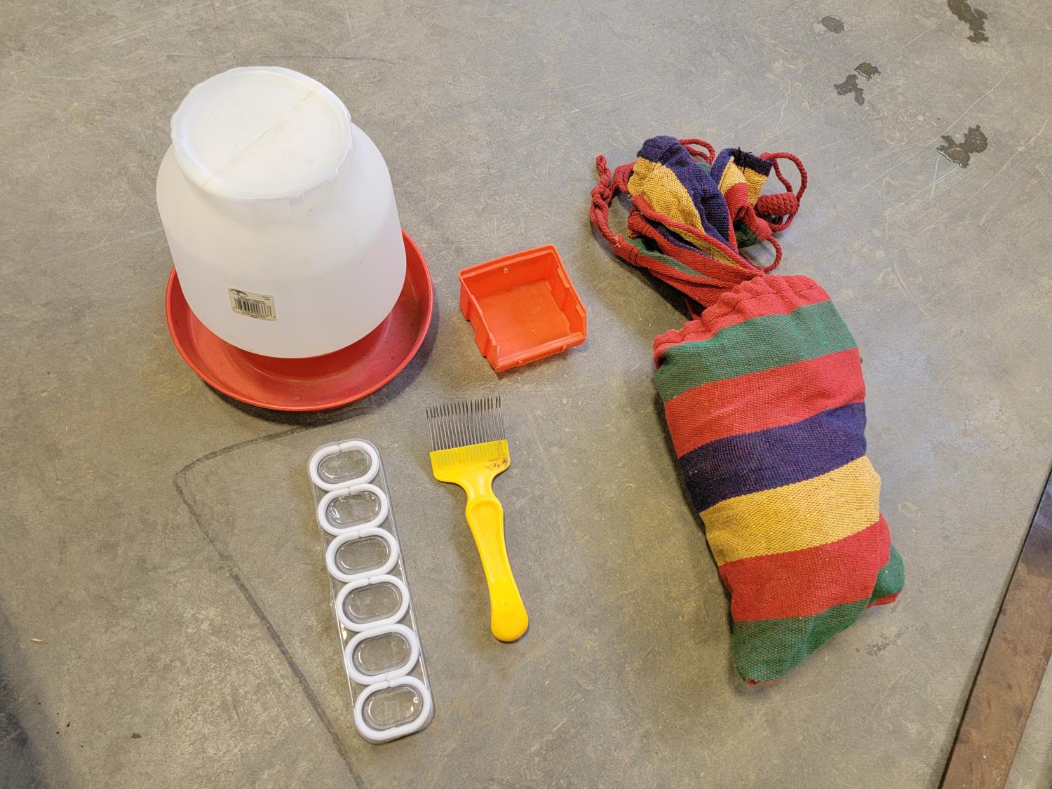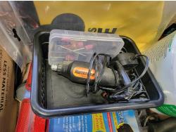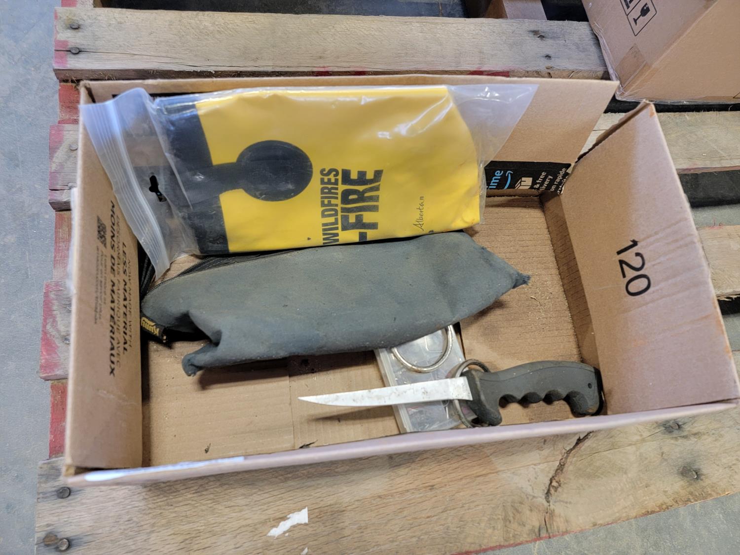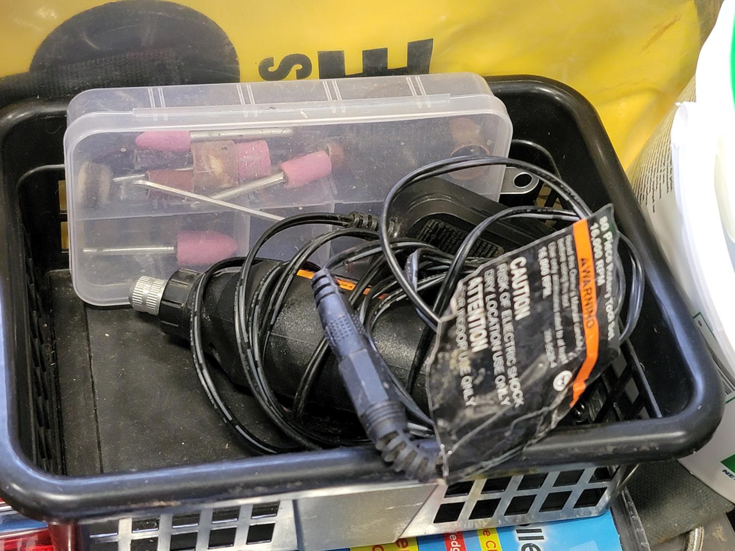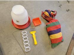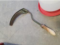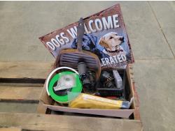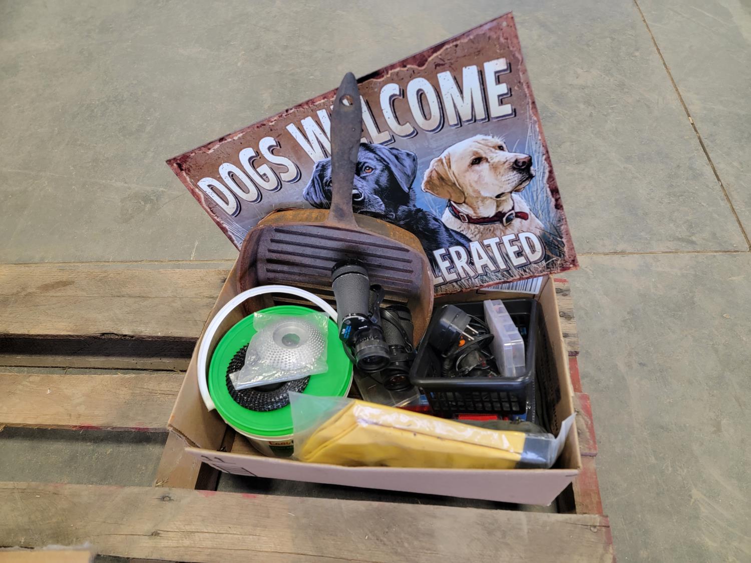 brake pads for Ford F150, rotary tool with bits, sledge hammer, tank wand, machete, belt sander, scythe