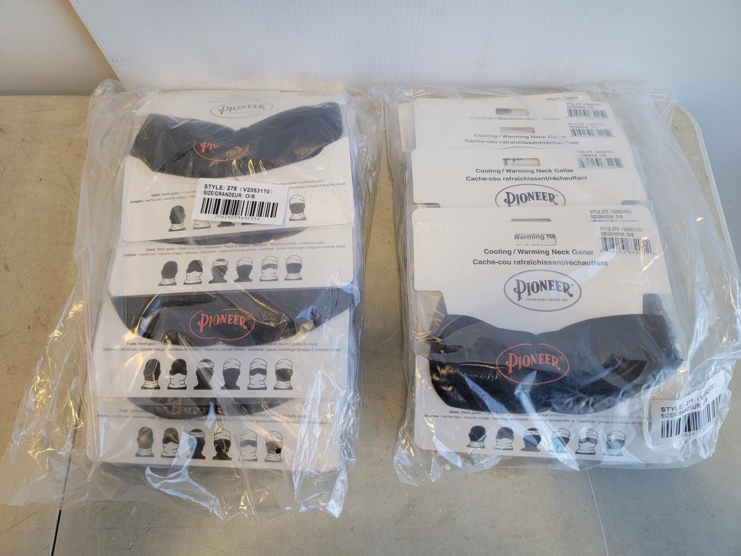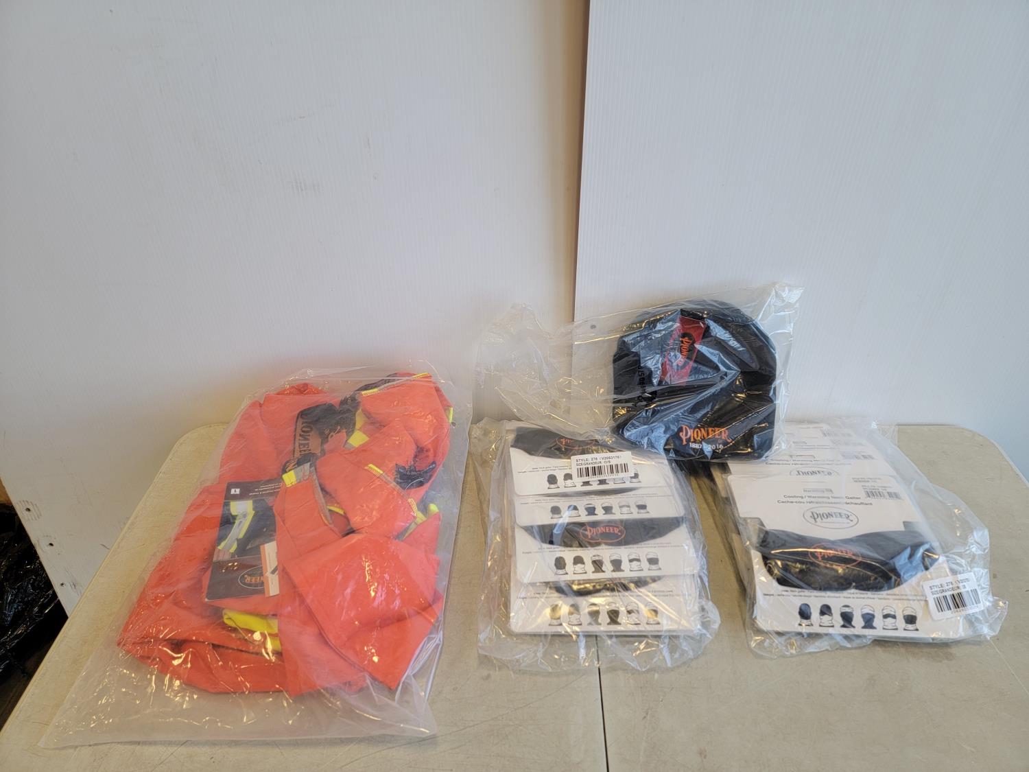 (20) neck gaiters, (6) toques, (1) Pioneer size 46 cotton coveralls