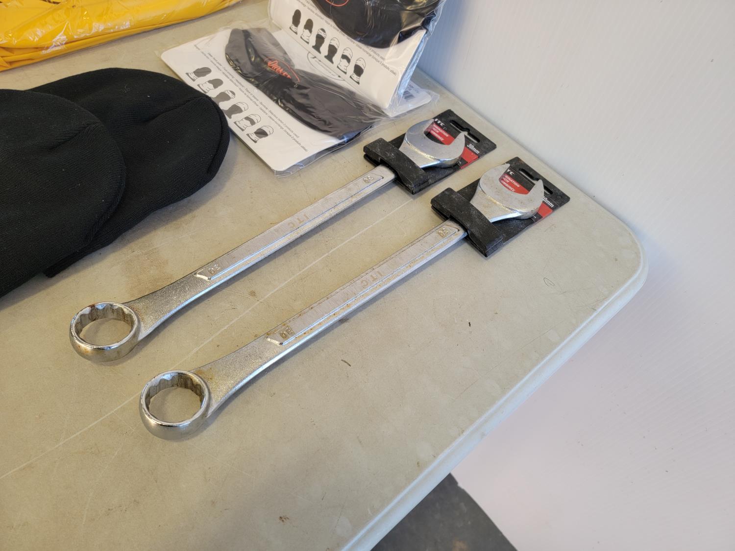 5074 Qty of Work Wear and (2) 30 mm Combination Wrenches (Unused)