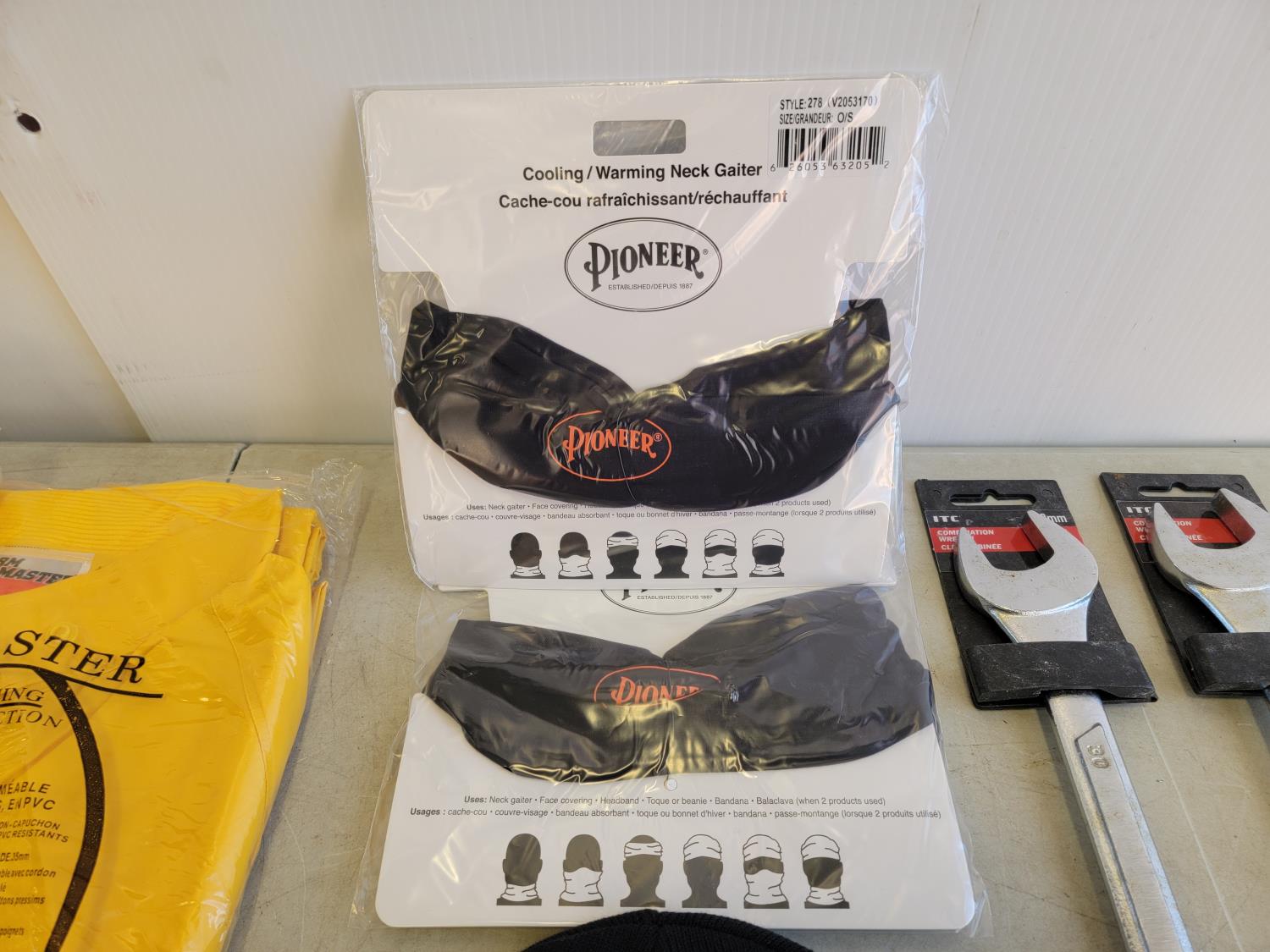 (3) Size 5XL rainsuits, (2) toques and (2) neck gaiters