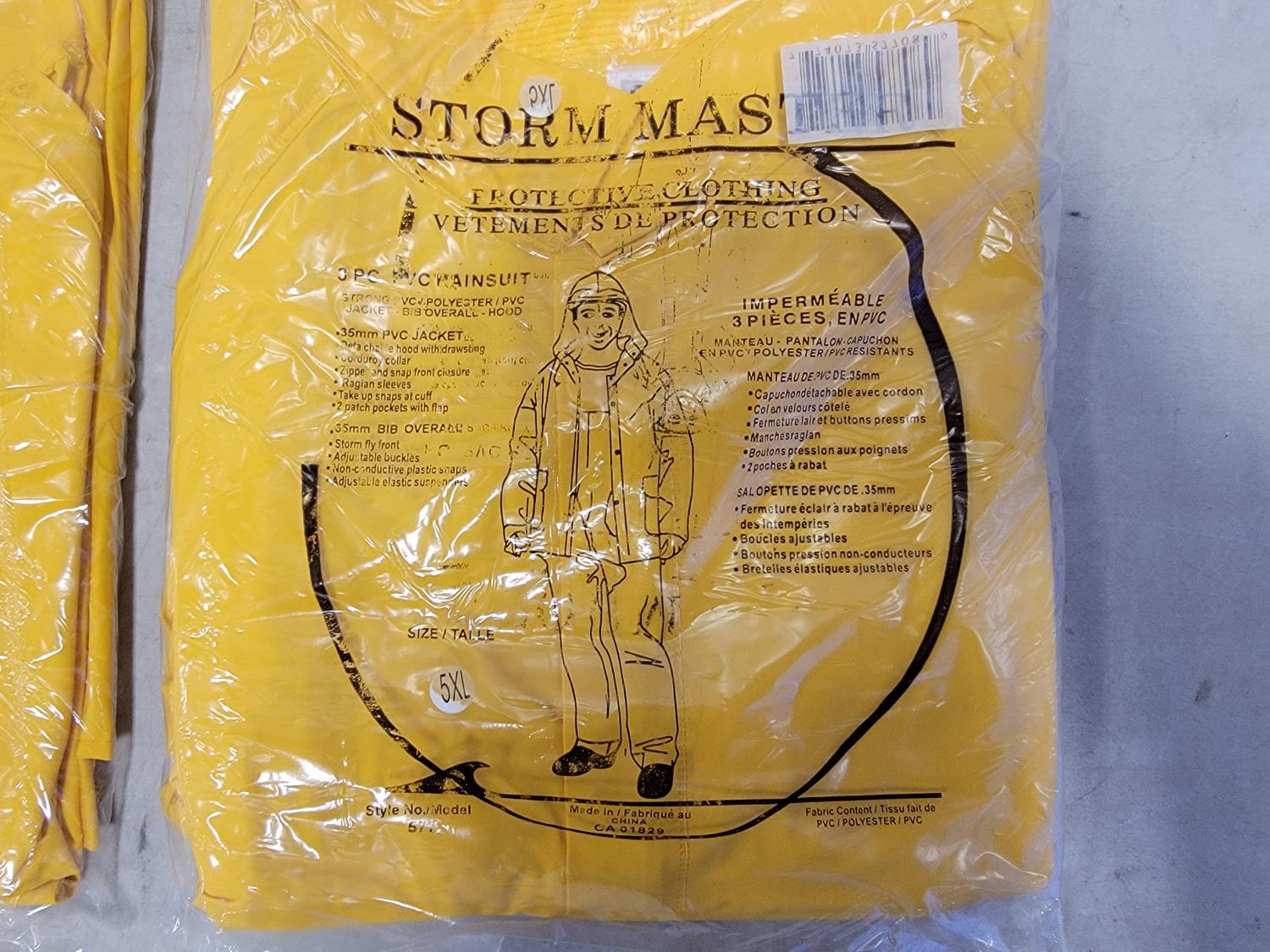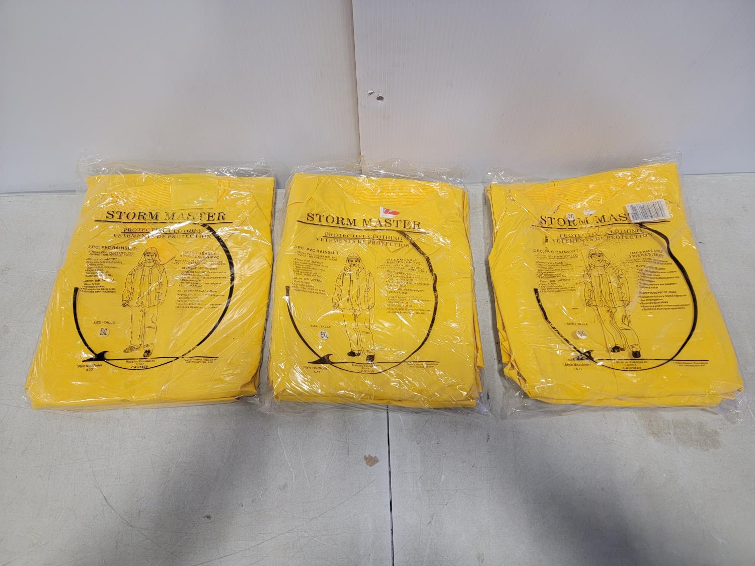 (3) 5XL 3 piece rainsuits, (2) toques, (2) neck gaiters and (2) 5XL disposable coveralls