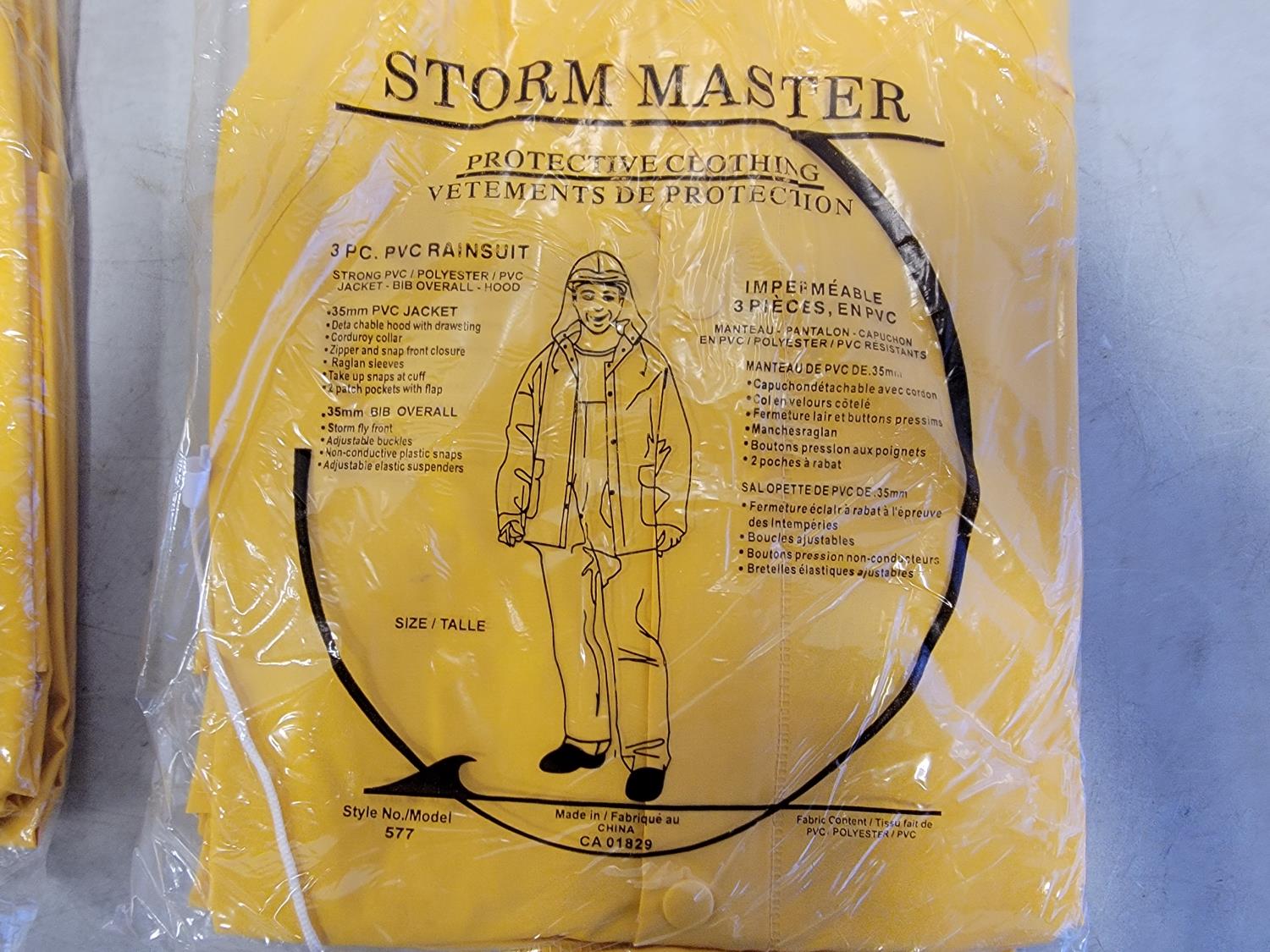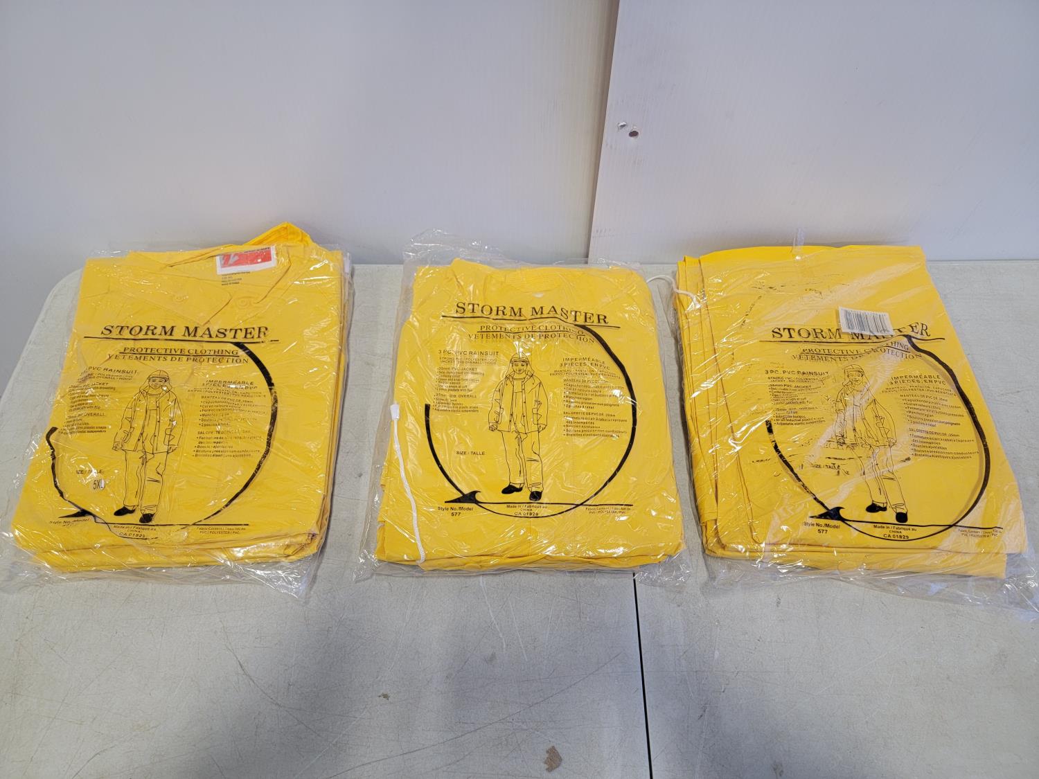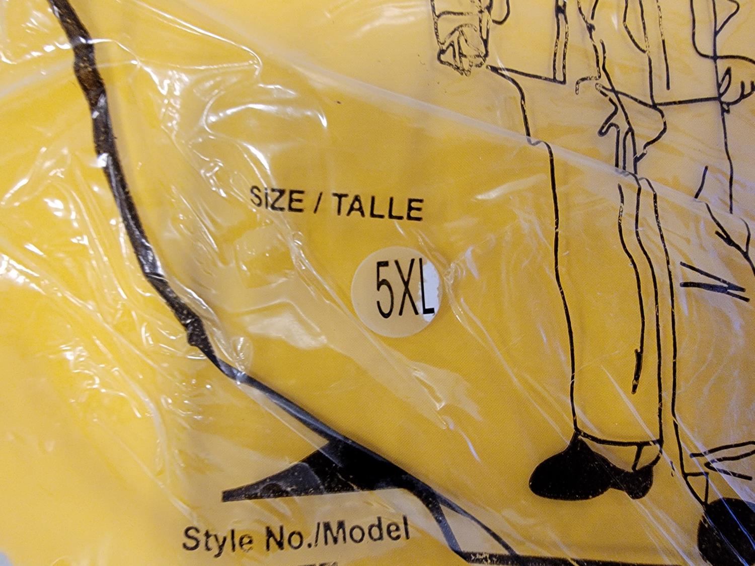 (3) 5XL 3 piece rainsuits, (2) toques, (2) neck gaiters and (2) 3XL disposable coveralls