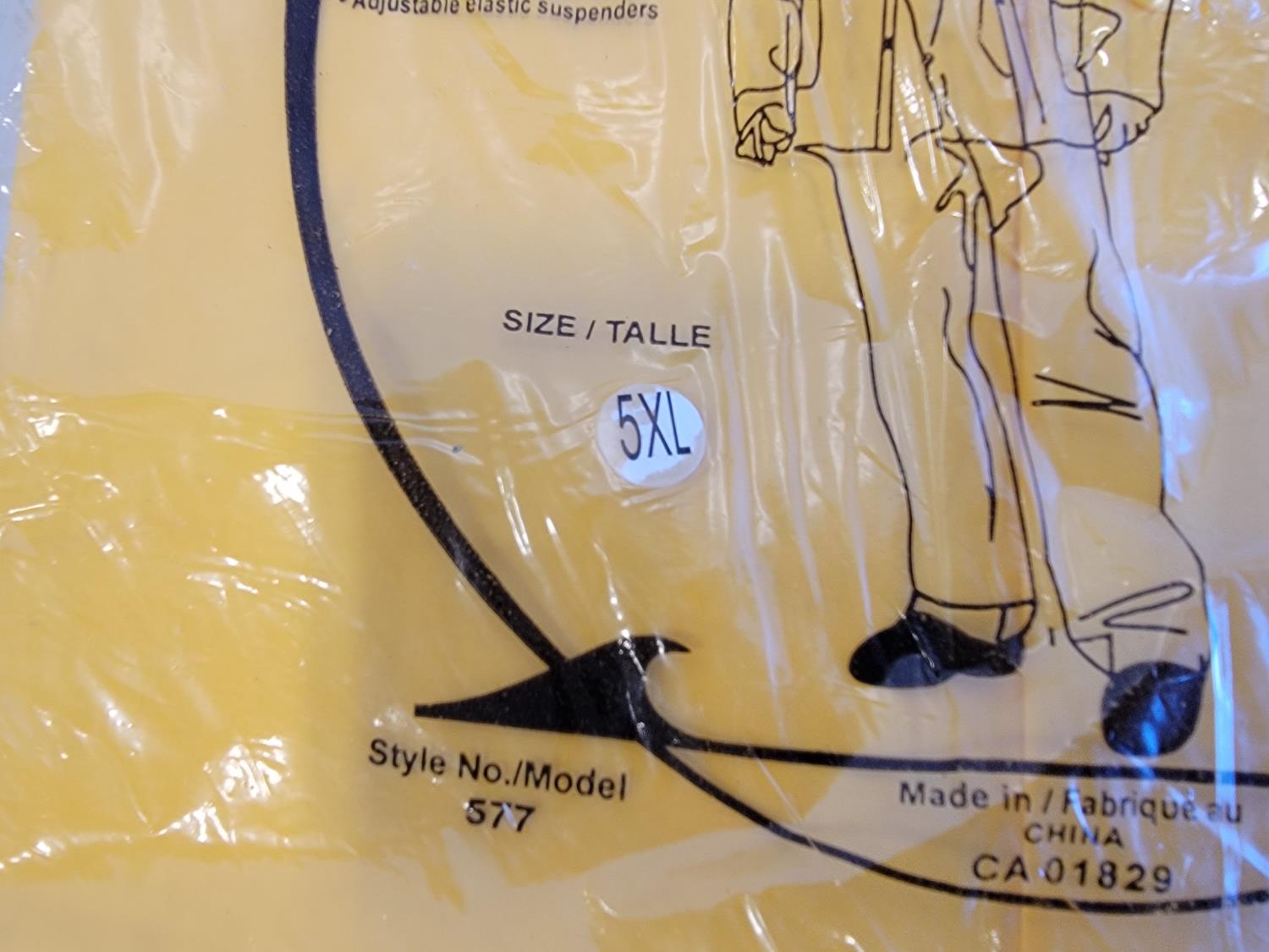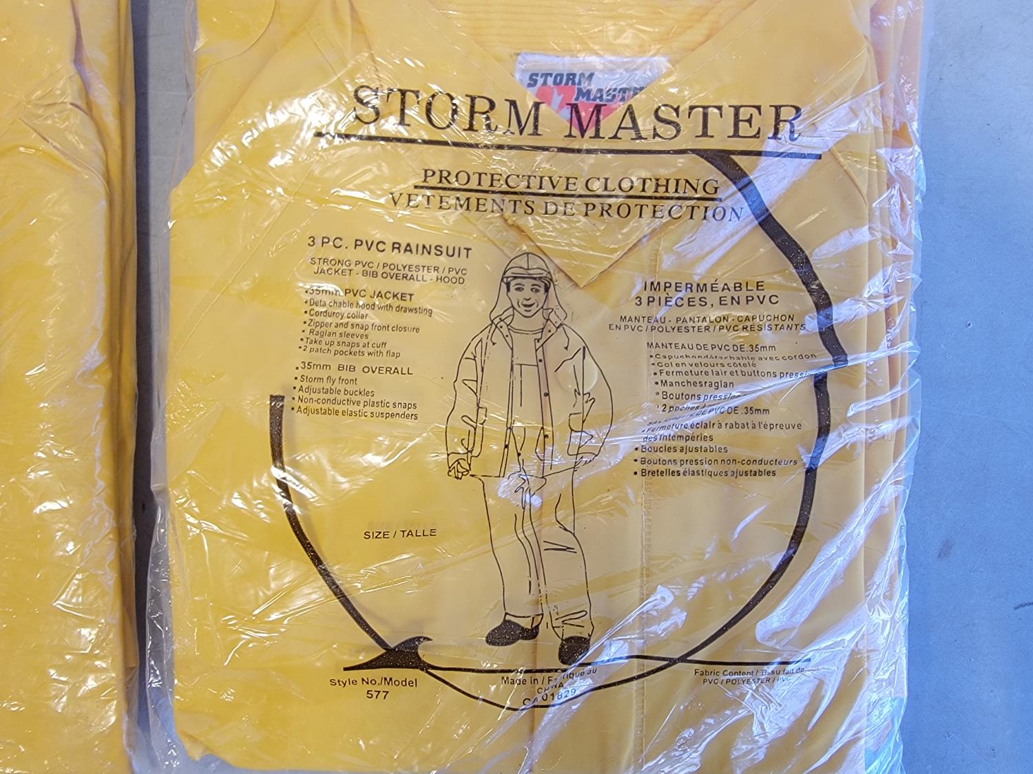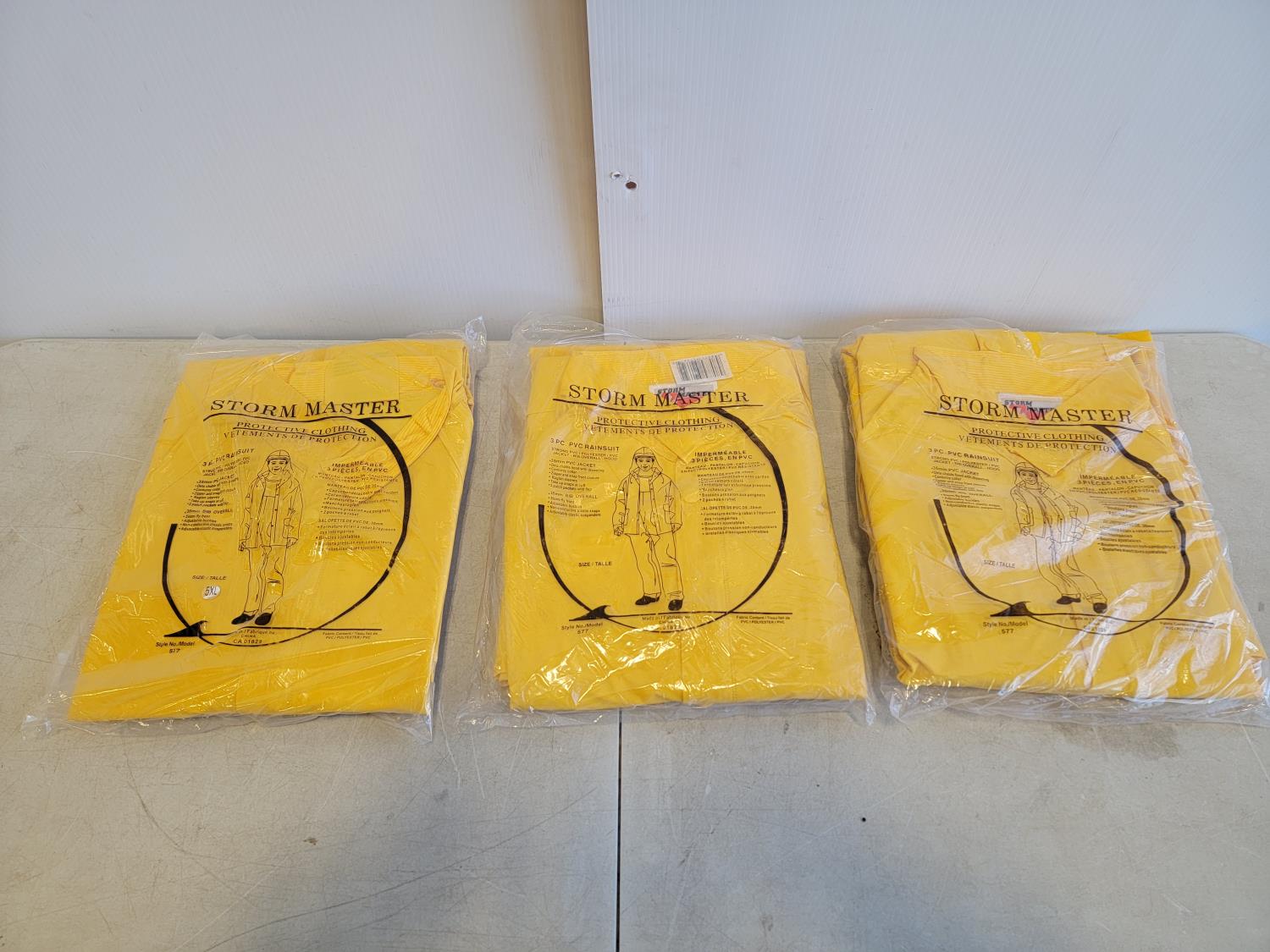 (3) 5XL 3 piece rainsuits, (3) toques, (3) neck gaiters and (2) disposable coveralls size S-5XL