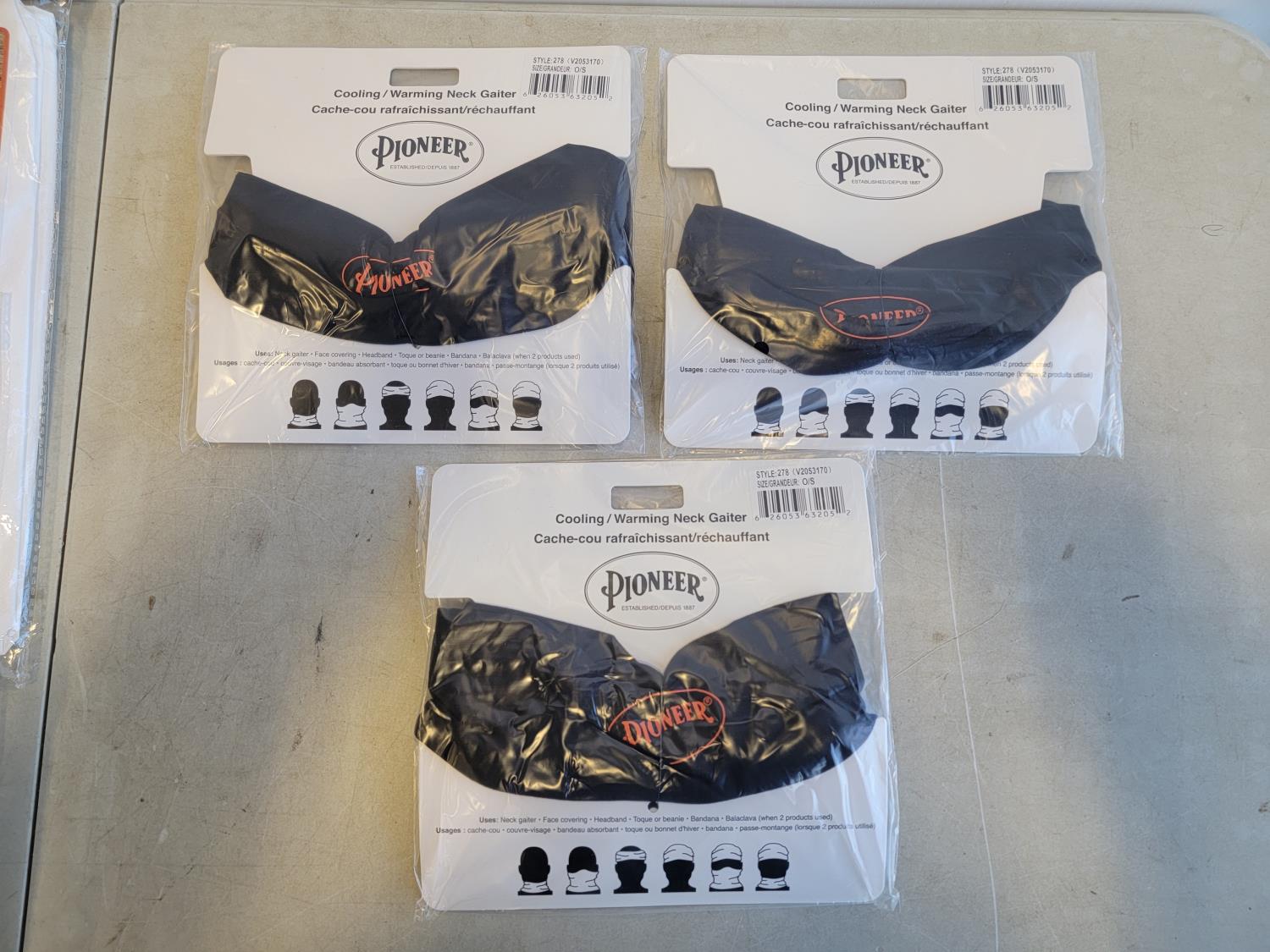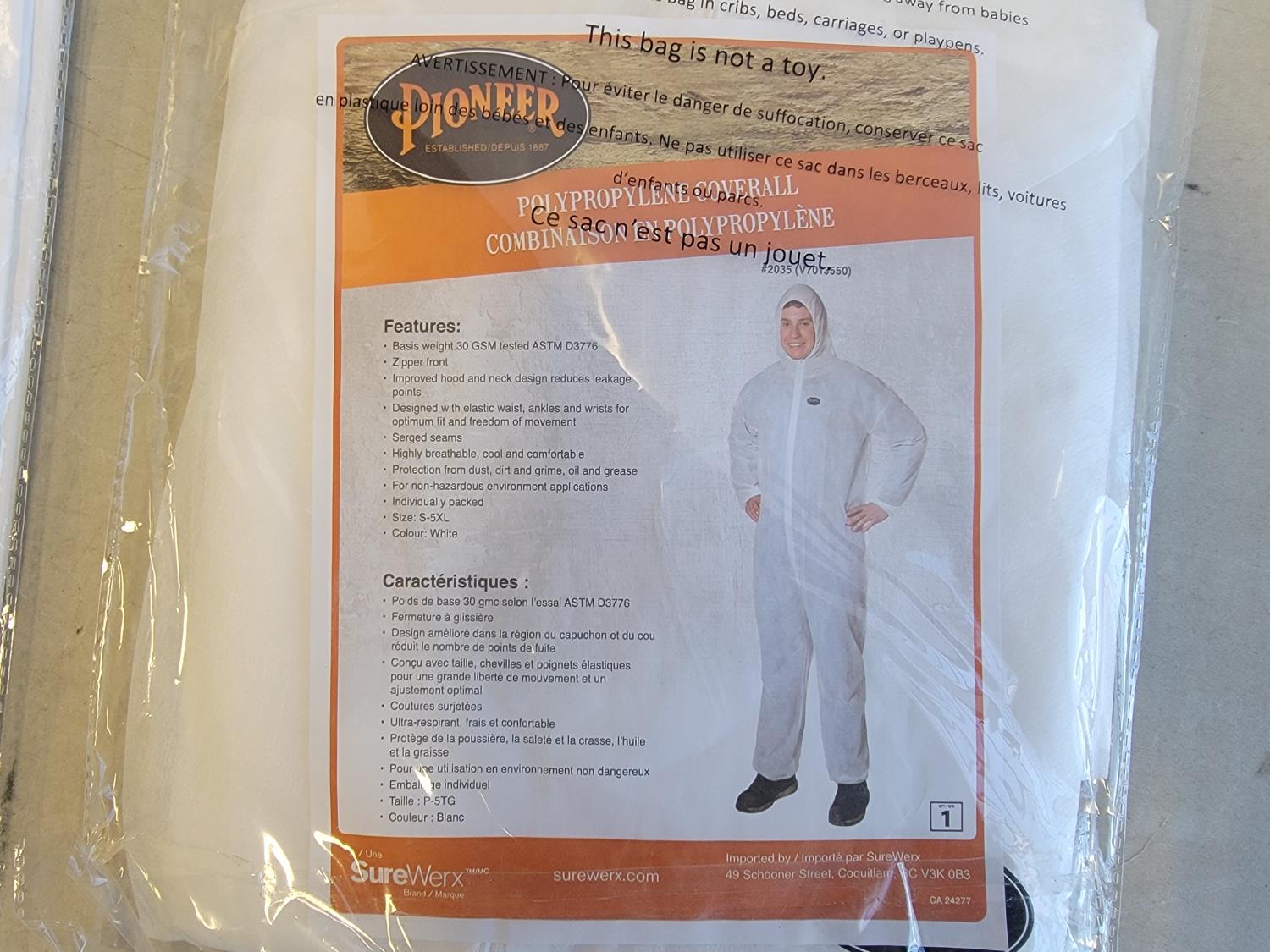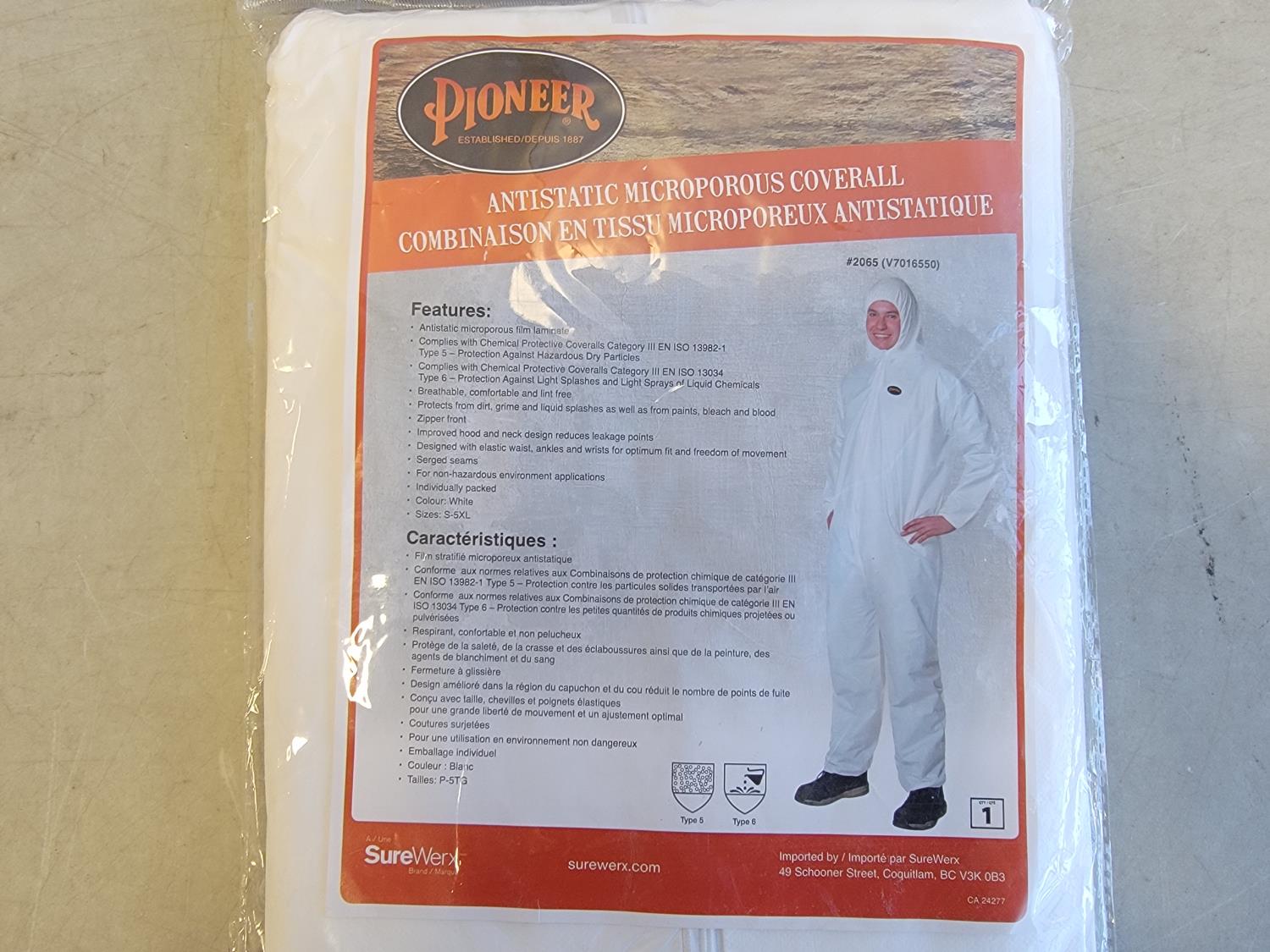 (3) 5XL 3 piece rainsuits, (3) toques, (3) neck gaiters and (2) disposable coveralls size S-5XL