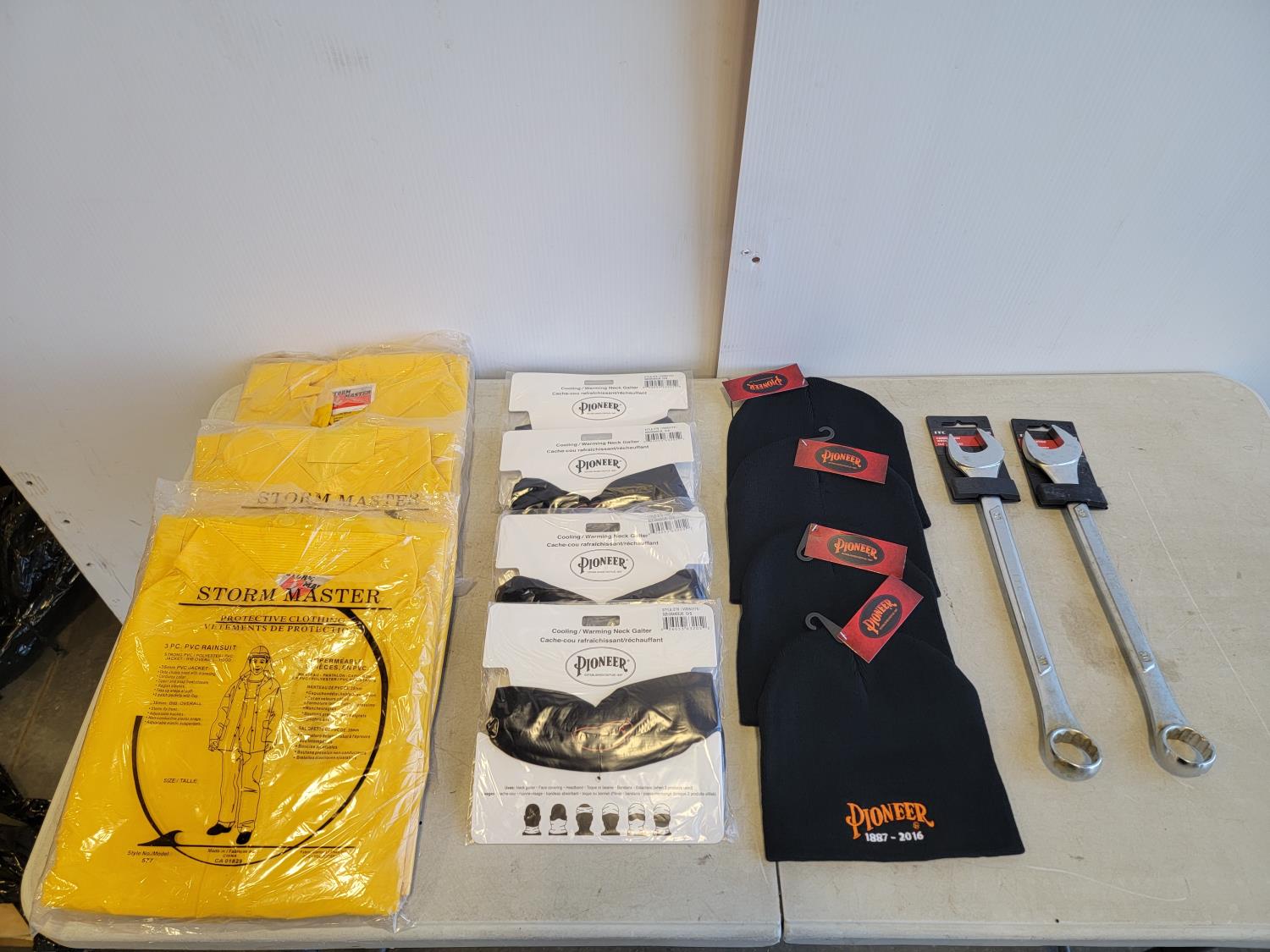 (3) 5XL rain suits, (4) toques, (4) neck gaiters