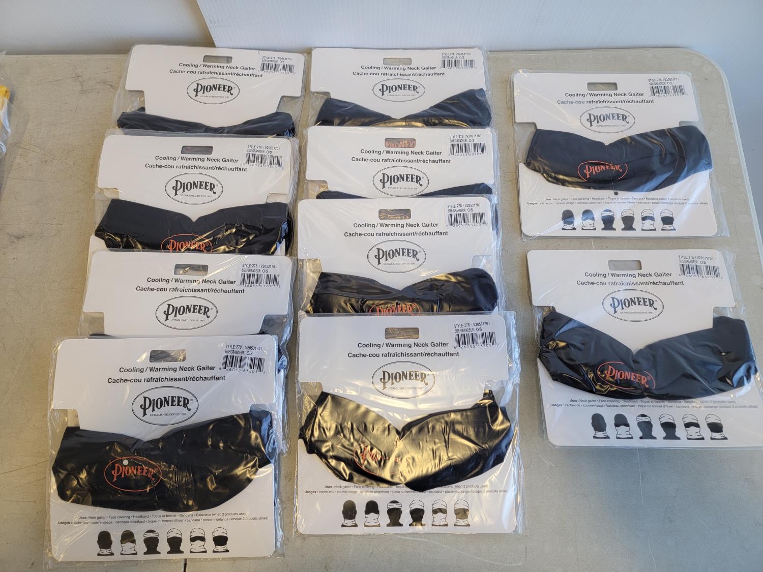 (1) 5XL rain suit, (10) toques, (10) neck gaiters